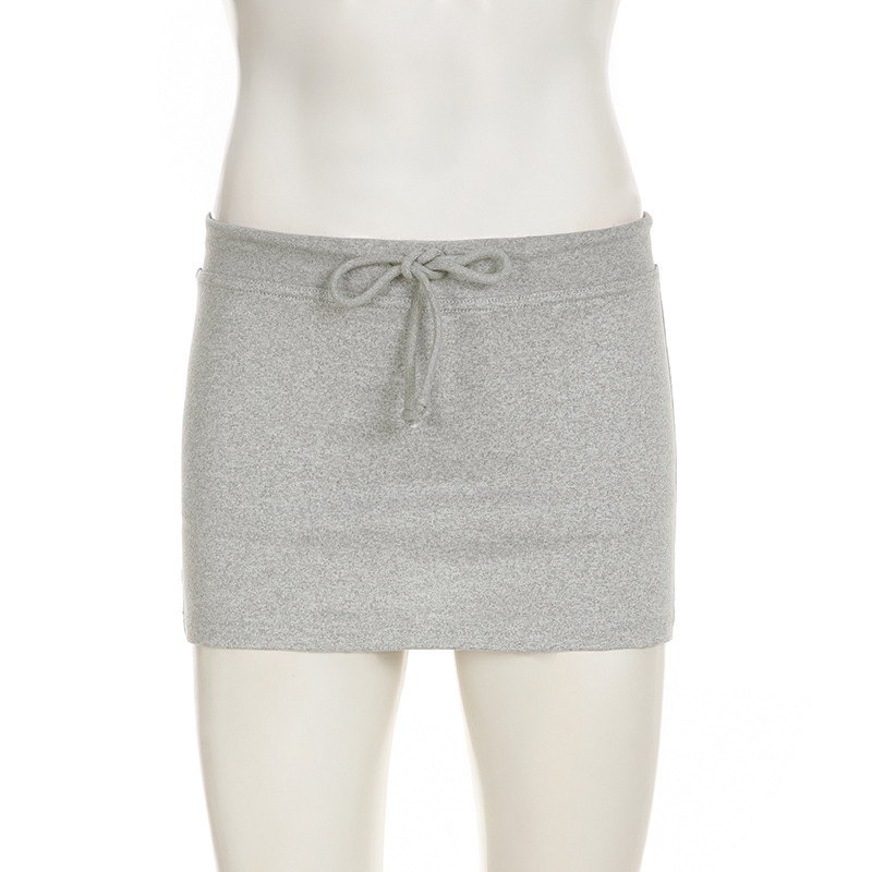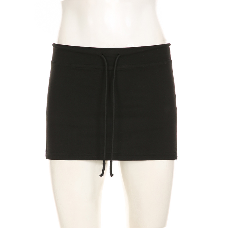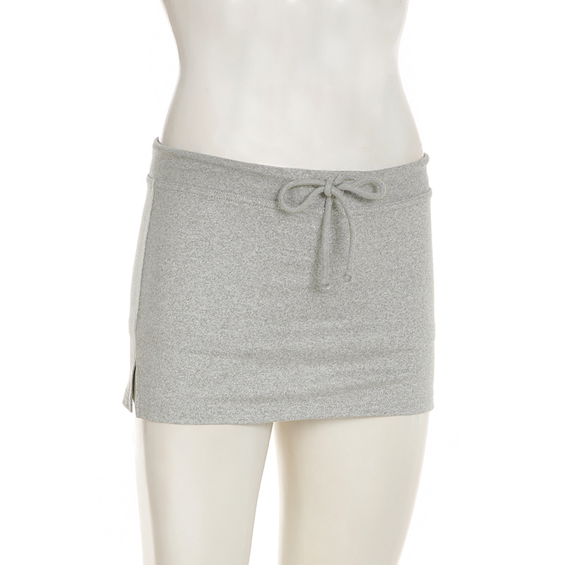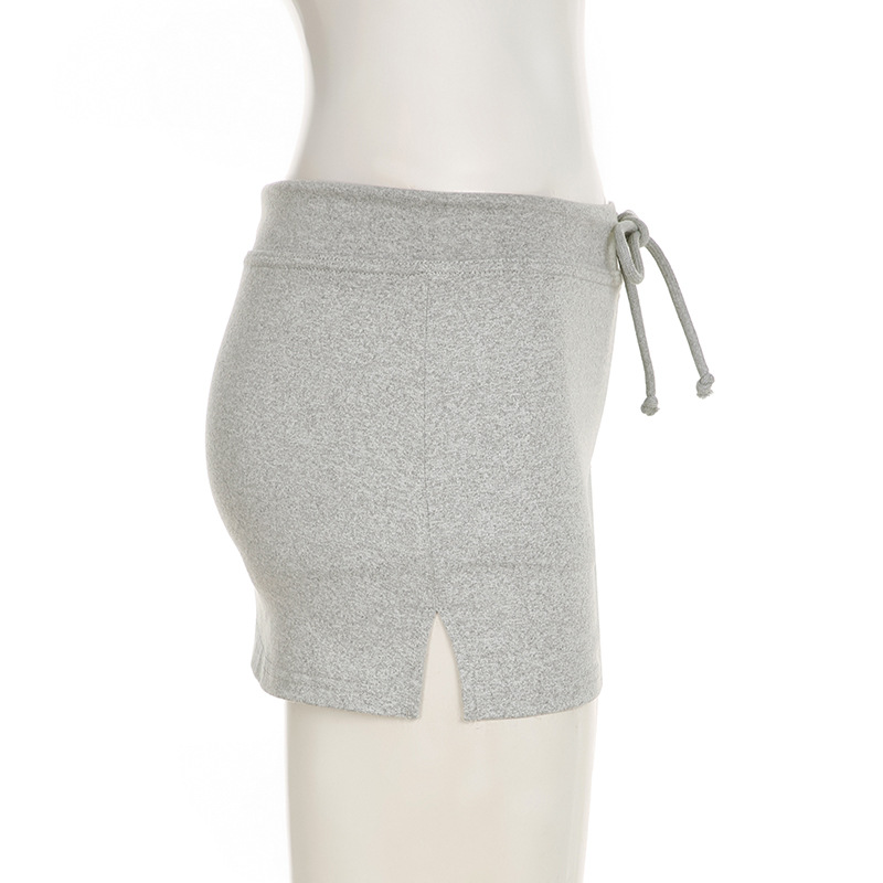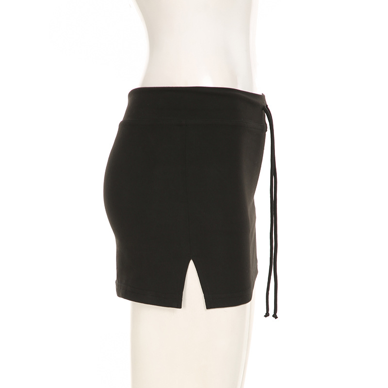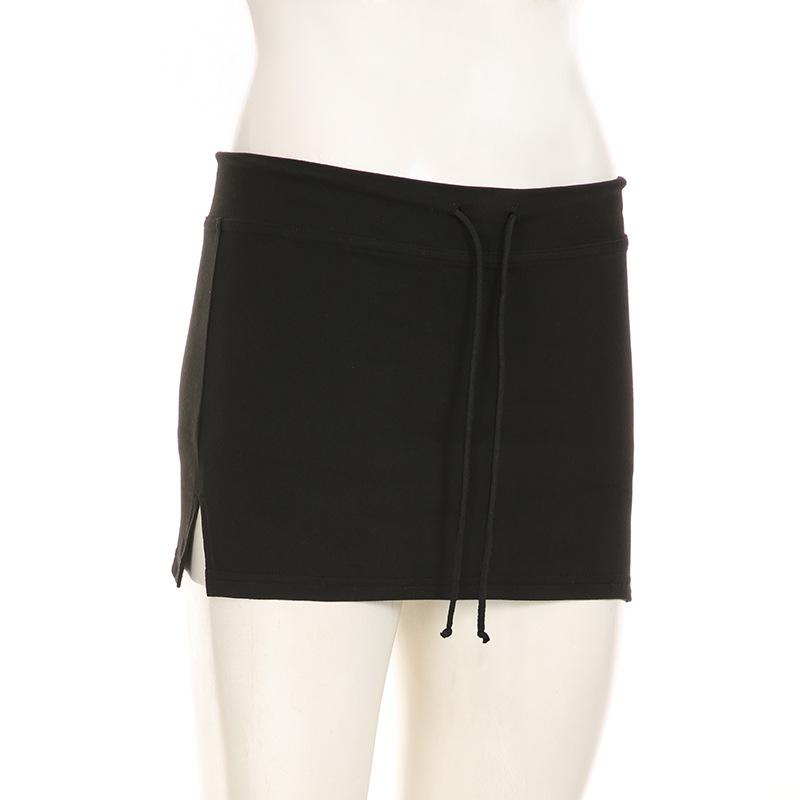 미국식 심플 스타일 드로스트링 슬릿 솔리드 컬러 스커트, 핫걸 로우 웨이스트 노출방지 레깅스, 힙을 감싸주는 슬리밍 팬츠 스커트스토어 가기