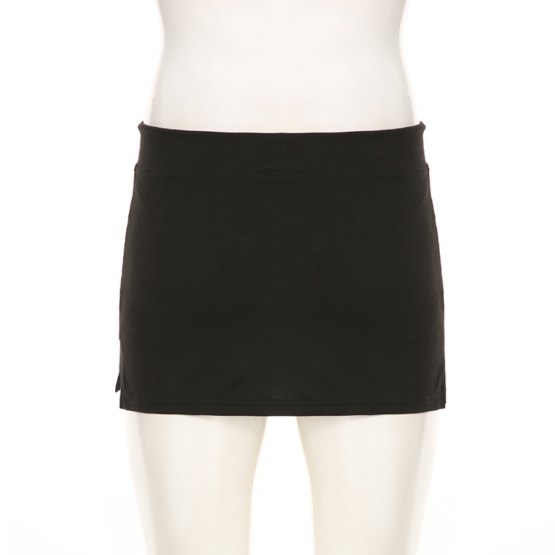 미국식 심플 스타일 드로스트링 슬릿 솔리드 컬러 스커트, 핫걸 로우 웨이스트 노출방지 레깅스, 힙을 감싸주는 슬리밍 팬츠 스커트