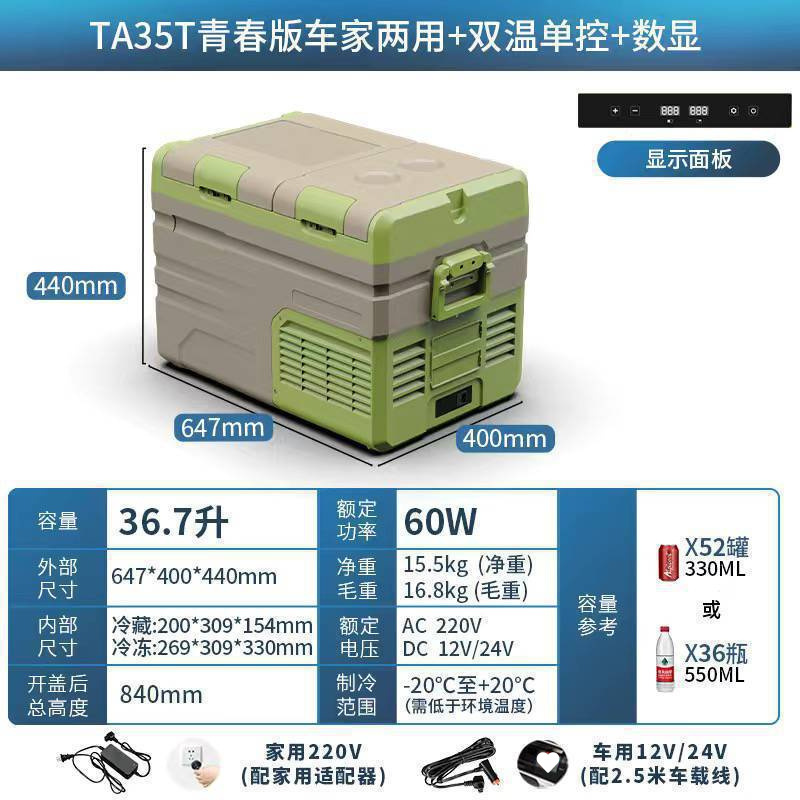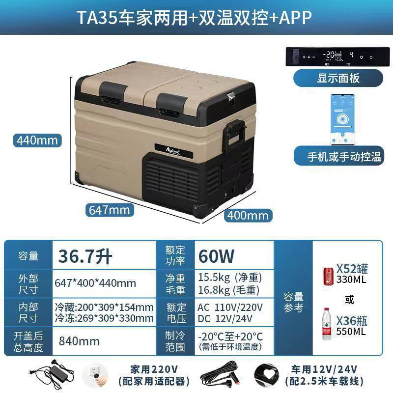 • TA35 리터 자동차 홈 이중 목적 + 이중 온도 및 이중 제어 + 플러그인 리튬 배터리 + APP [이중 도어]
