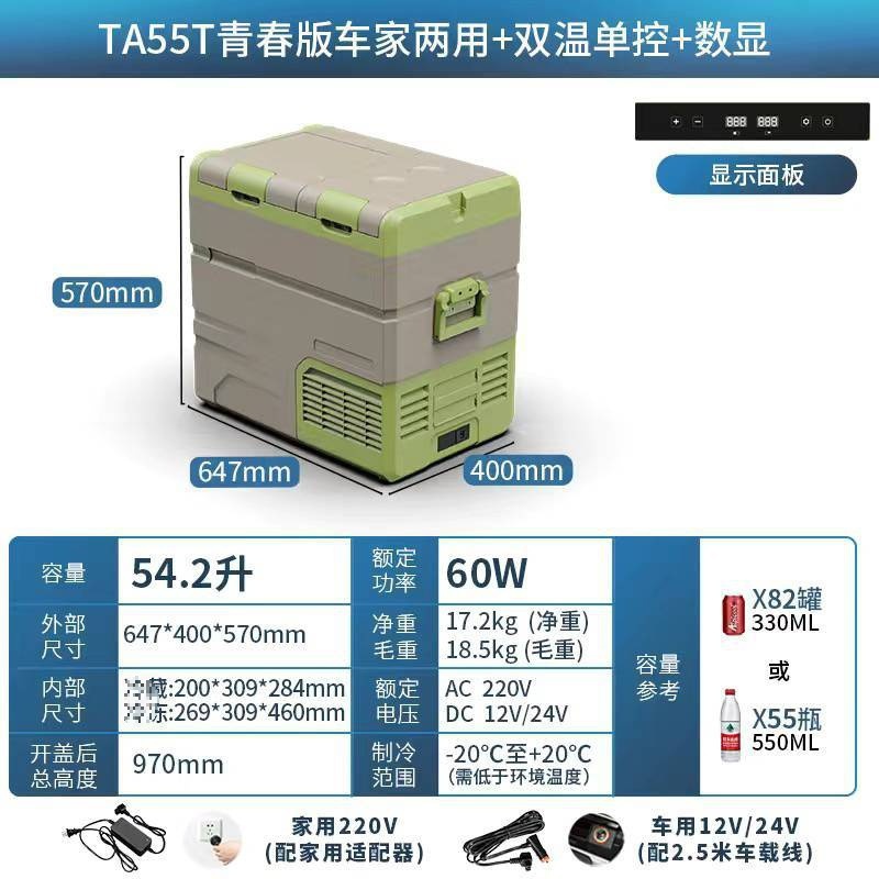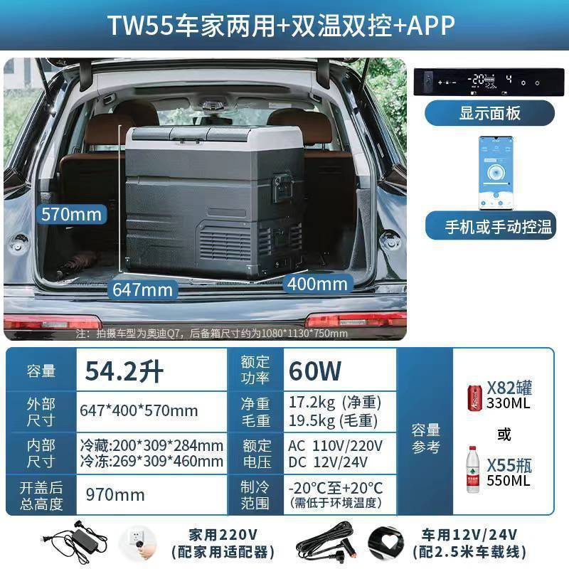 • TA55 리터 자동차 홈 이중 목적 + 이중 온도 및 이중 제어 + 플러그인 리튬 배터리 + APP [이중 도어]