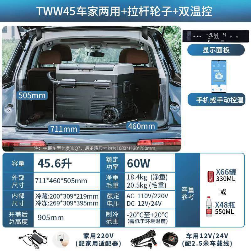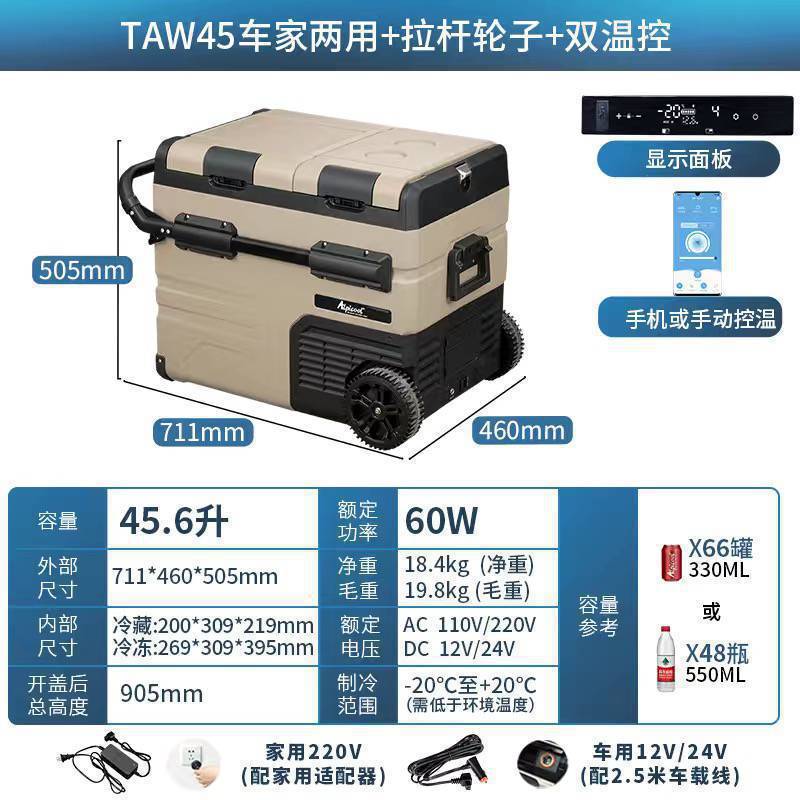 • TAW 45리터 이중 목적 자동차 + 이중 온도 및 이중 제어 + 플러그인 리튬 배터리 + 당김 막대 휠 + 앱