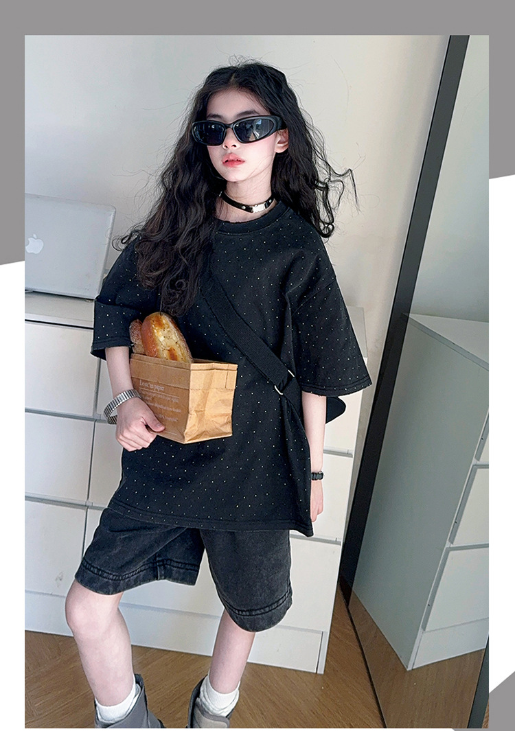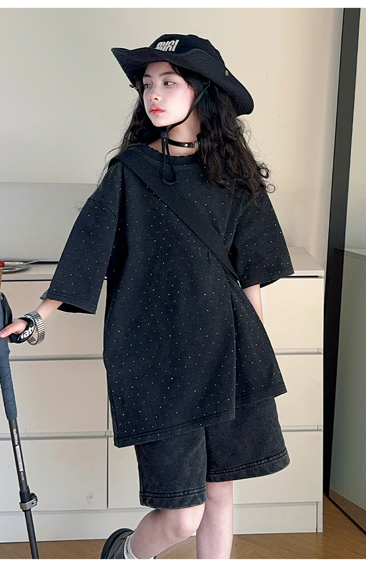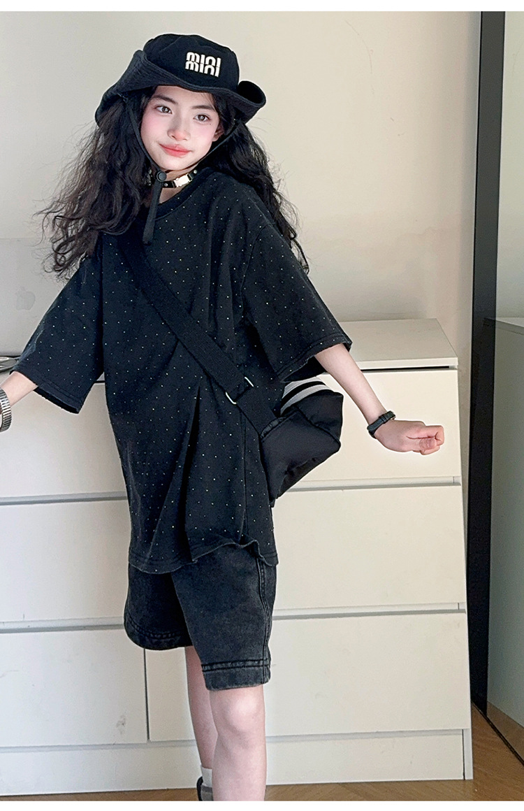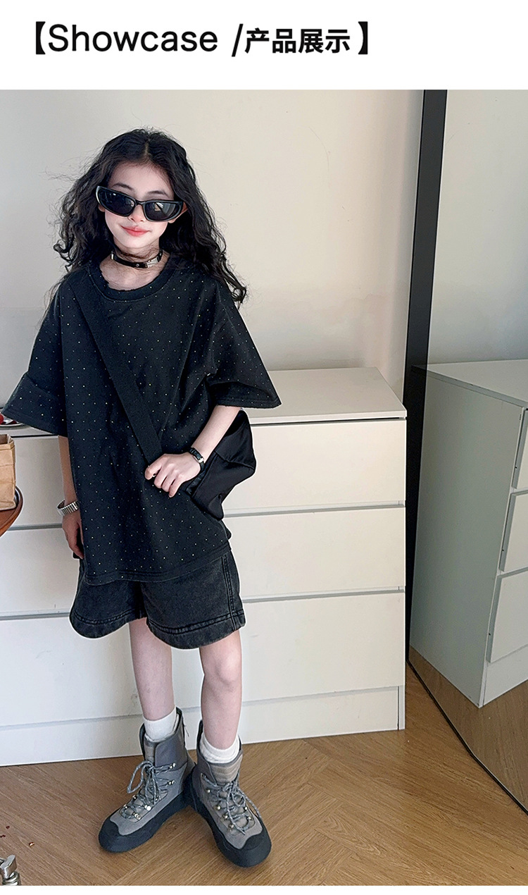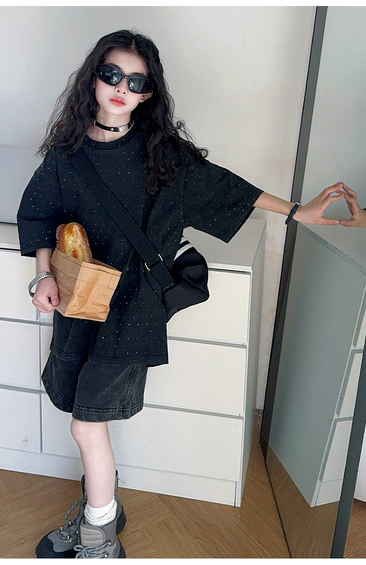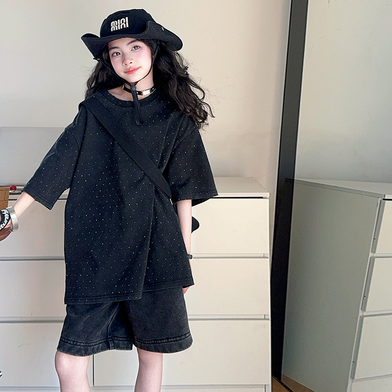 하이 엔드 브랜드 한국 아동 의류 소녀 다이아몬드 패션 반팔 티셔츠 2025 새로운 여름 어린이 반팔 소년