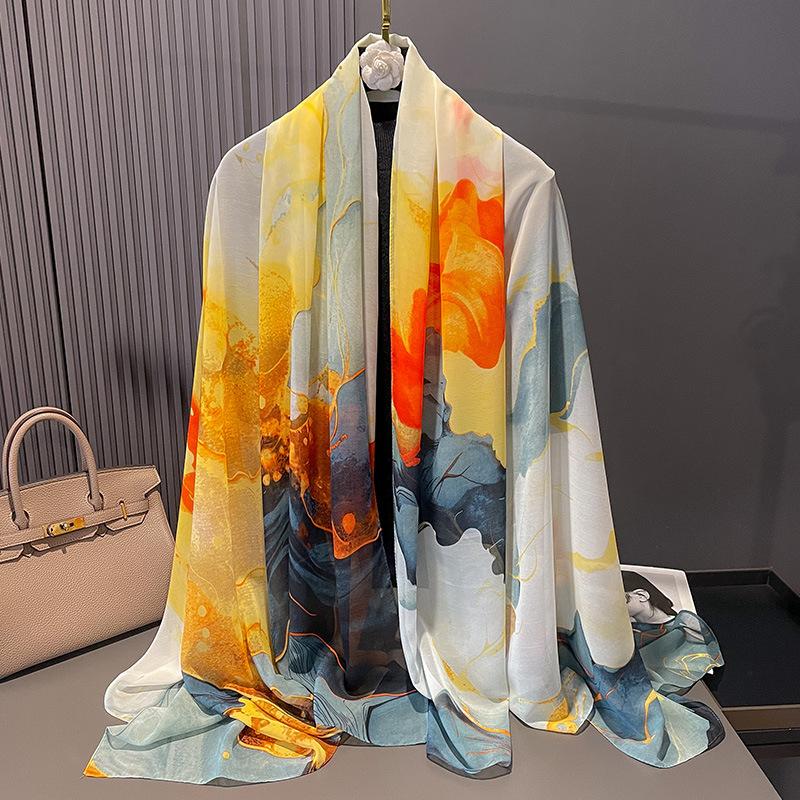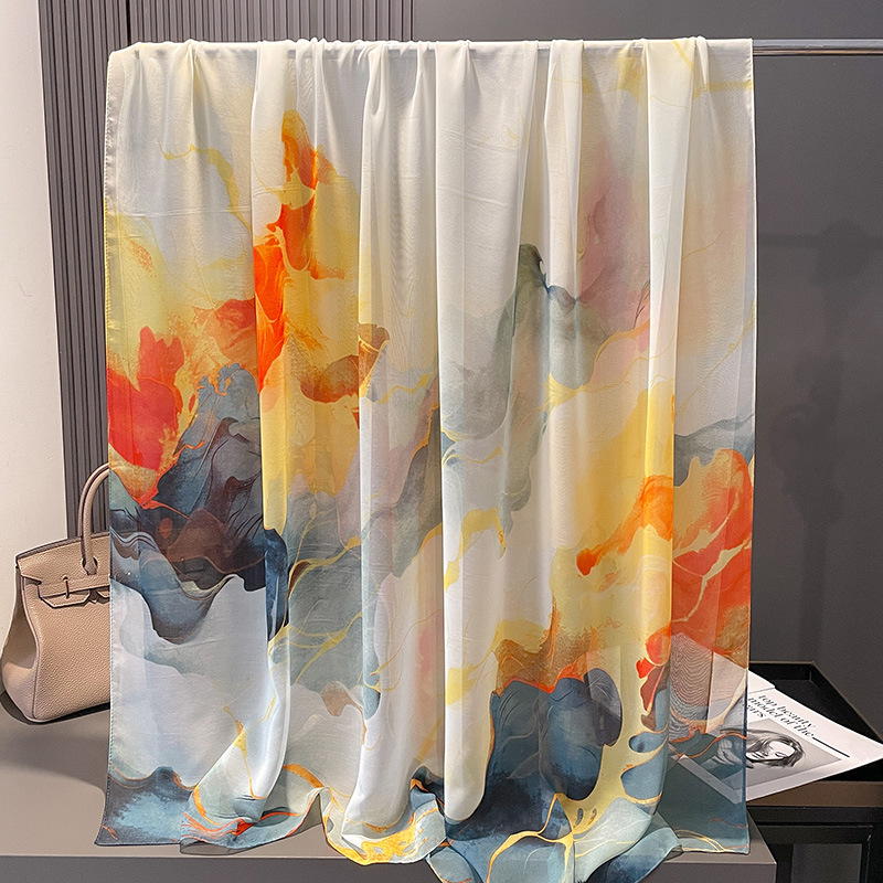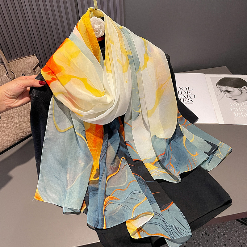 여성을위한 봄과 여름 양산 실크 스카프 새로운 대형 감초 거즈 인쇄 비치 목도리 스카프 여성을위한 태양 보호 거즈 스카프 도매스토어 가기
