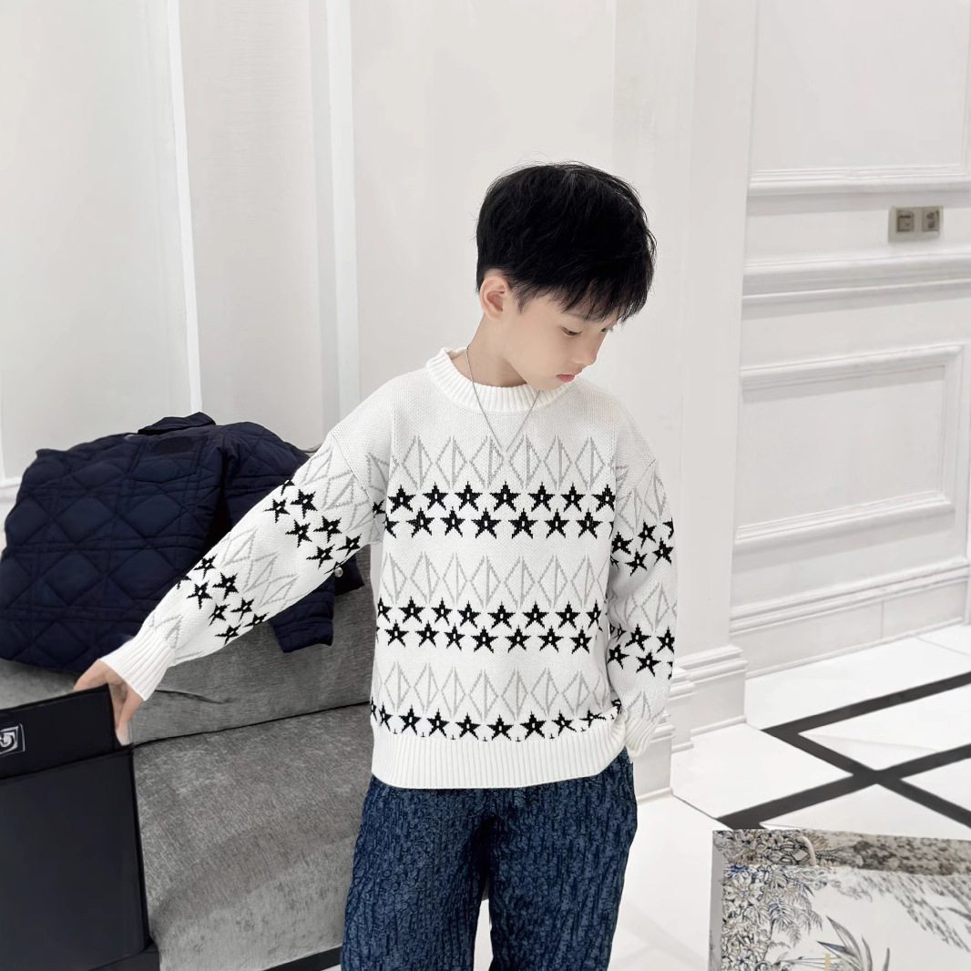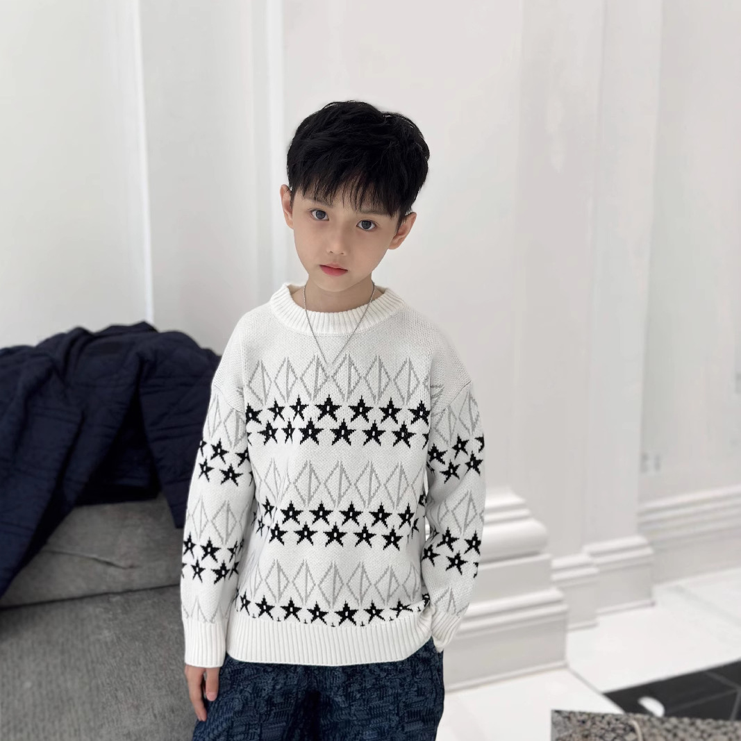 24 가을 겨울 신작 아동복 스타 아동용 풀오버 스웨터 소년 소녀 대형 아동용 스웨터 고급 아동복