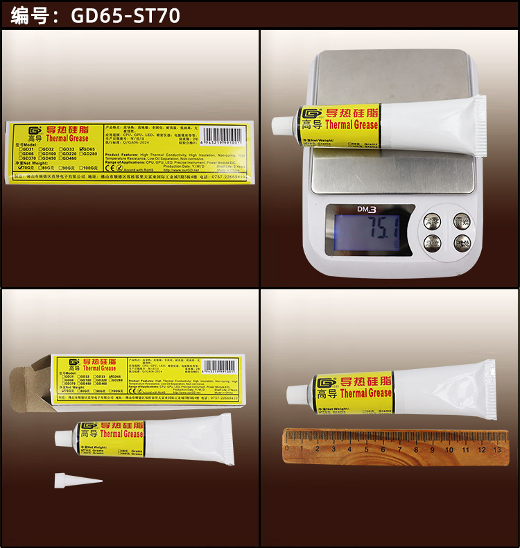 • GD65-ST70 회색 1.05 W/M-K 순중량 70g 알루미늄 호스
