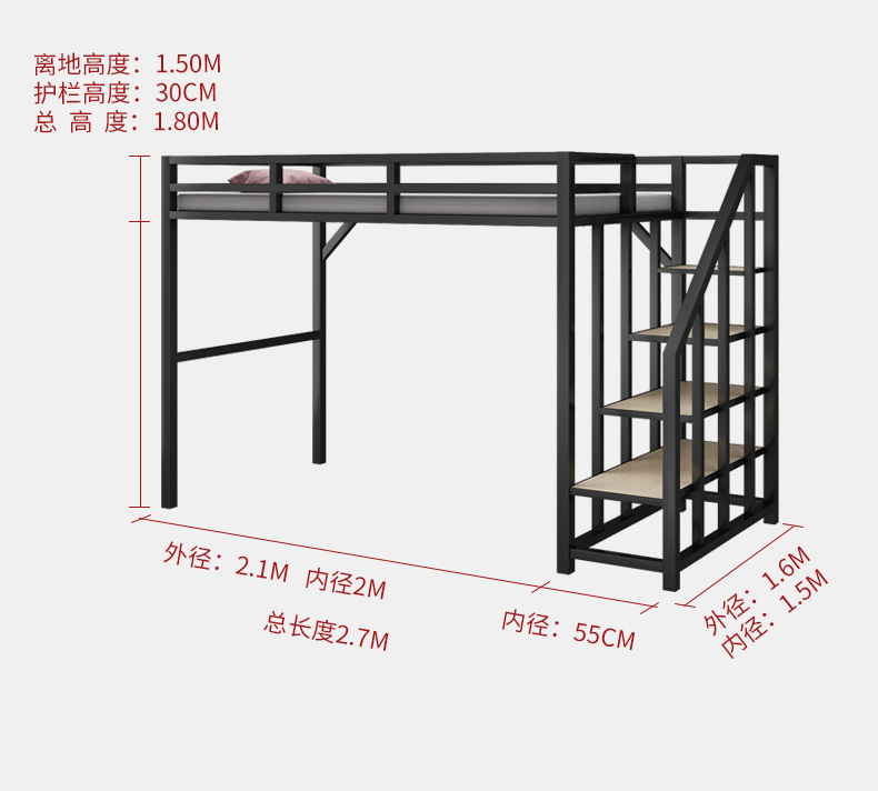 아이언 상층 및 하층 아이언 프레임 침대 작은 아파트 파빌리온 침대 어퍼 로프트 아파트 다락방 듀플렉스 2 층 고가 침대스토어 가기