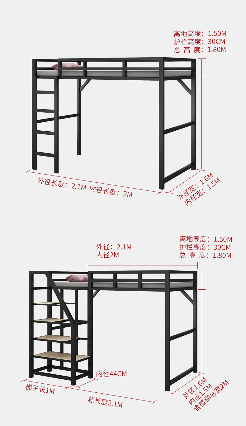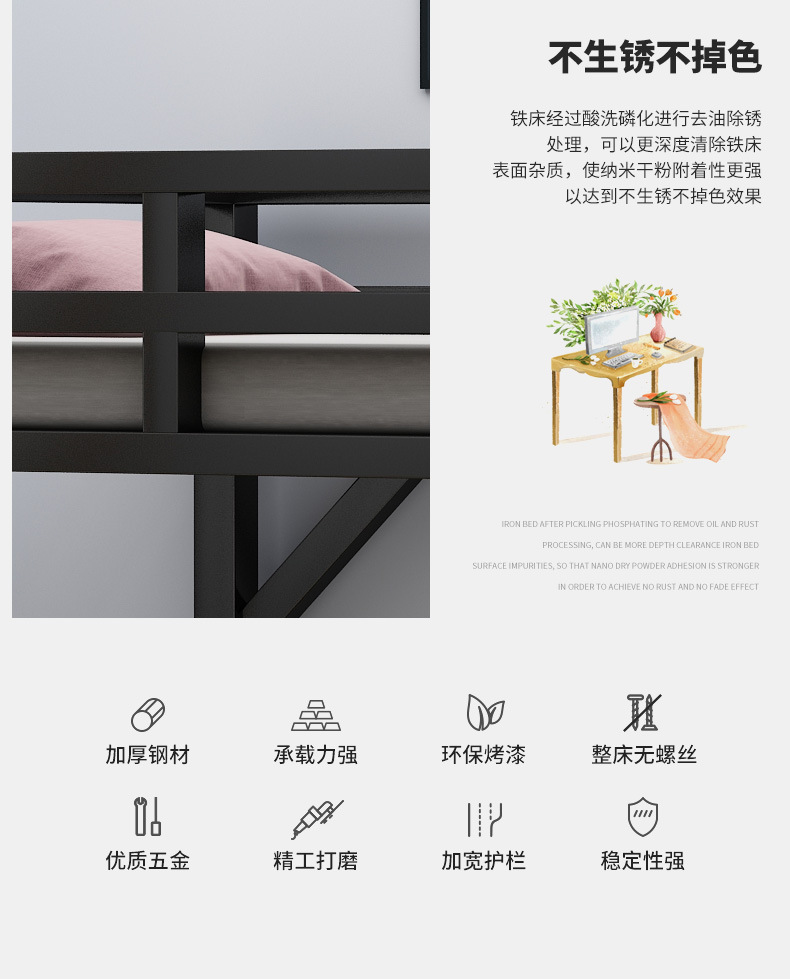 아이언 상층 및 하층 아이언 프레임 침대 작은 아파트 파빌리온 침대 어퍼 로프트 아파트 다락방 듀플렉스 2 층 고가 침대