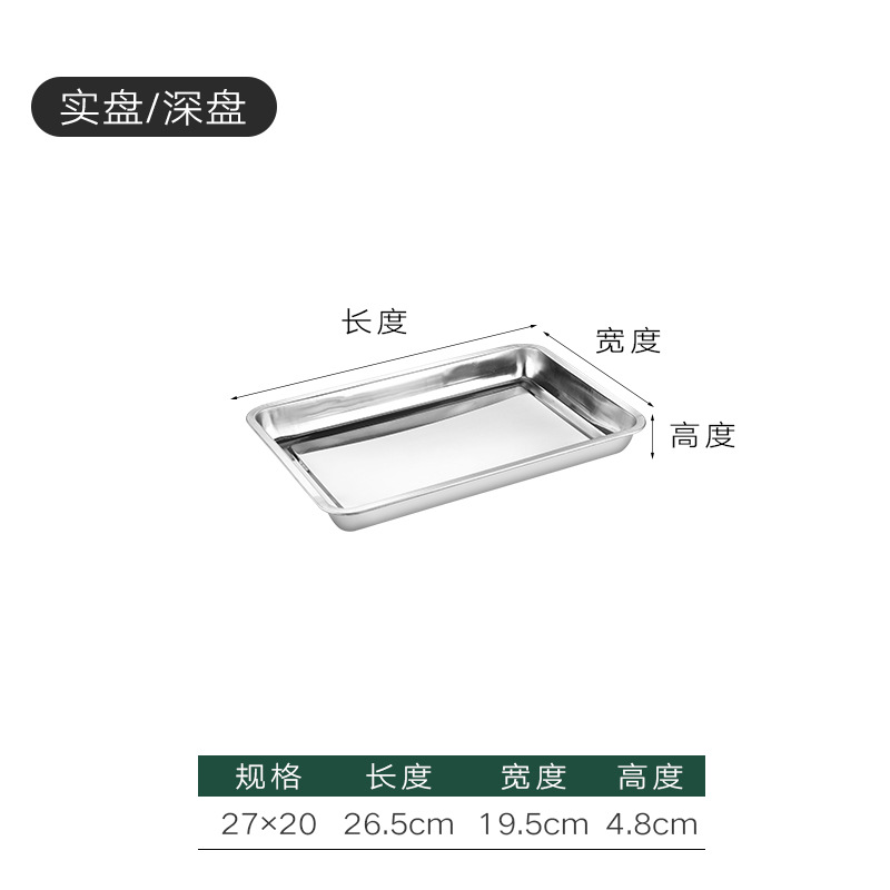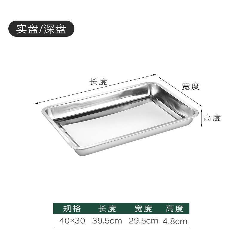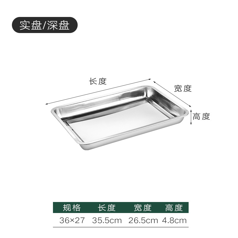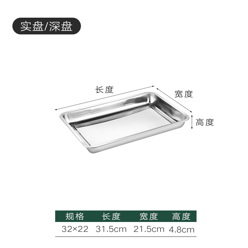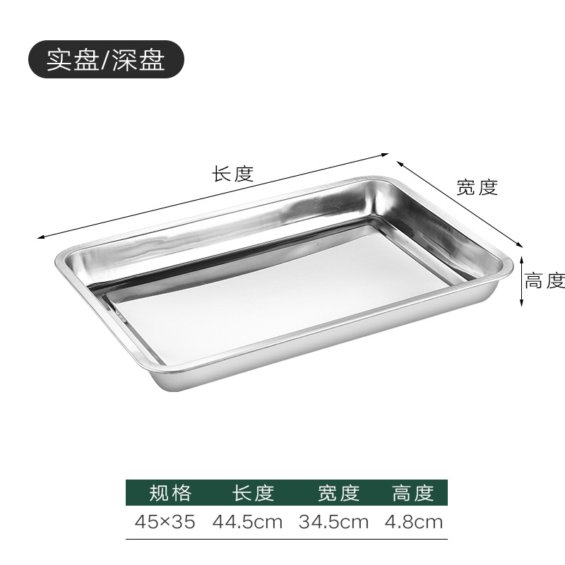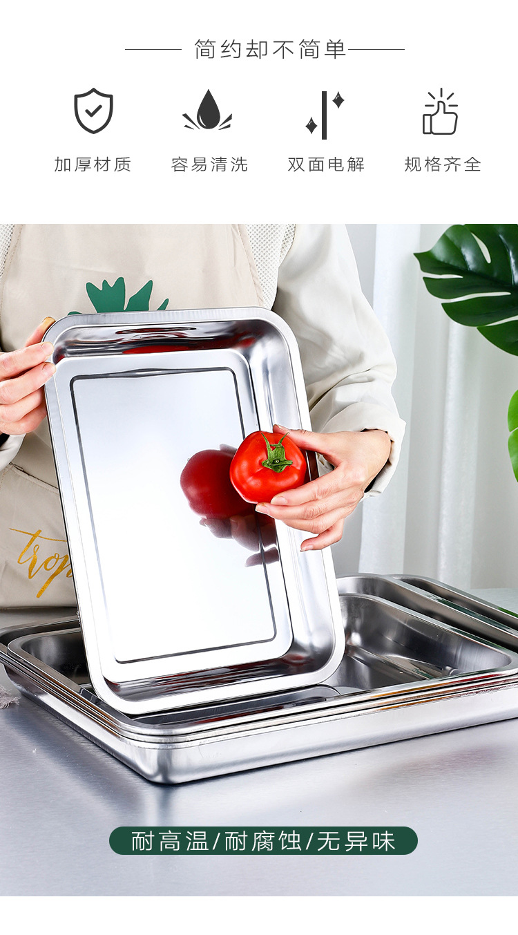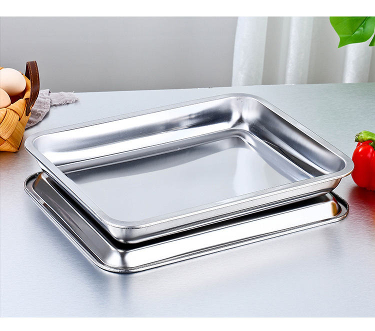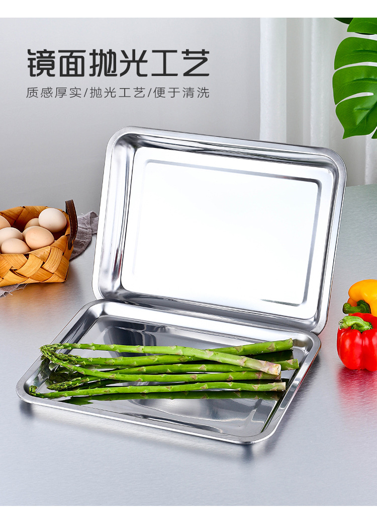 트레이 스테인레스 스틸 접시 직사각형 두꺼운 사각형 접시 찜 밥 접시 상업용 가정용 접시 만두 접시 바베큐 접시