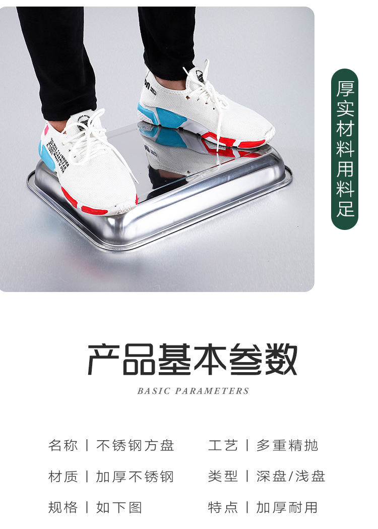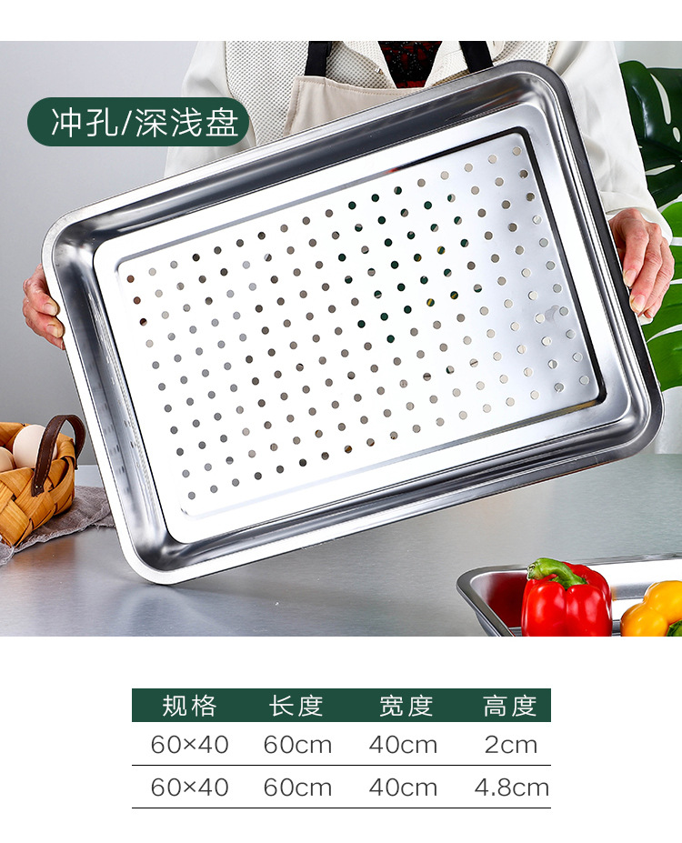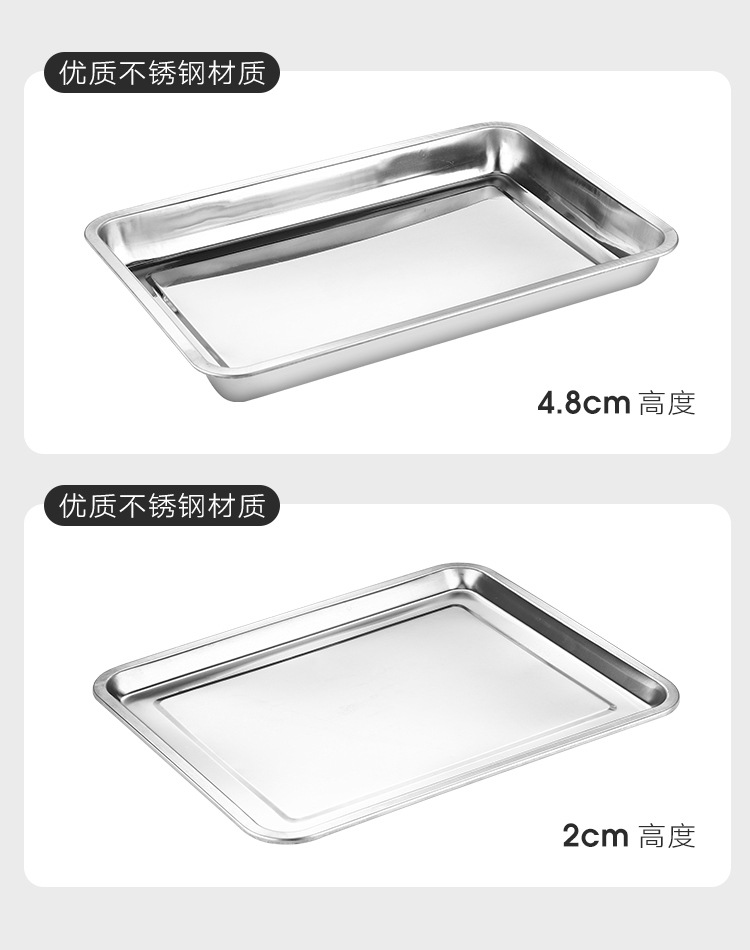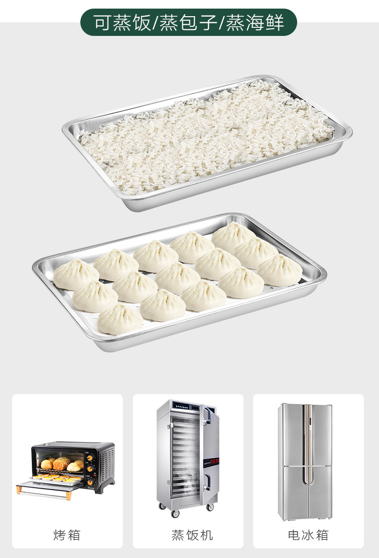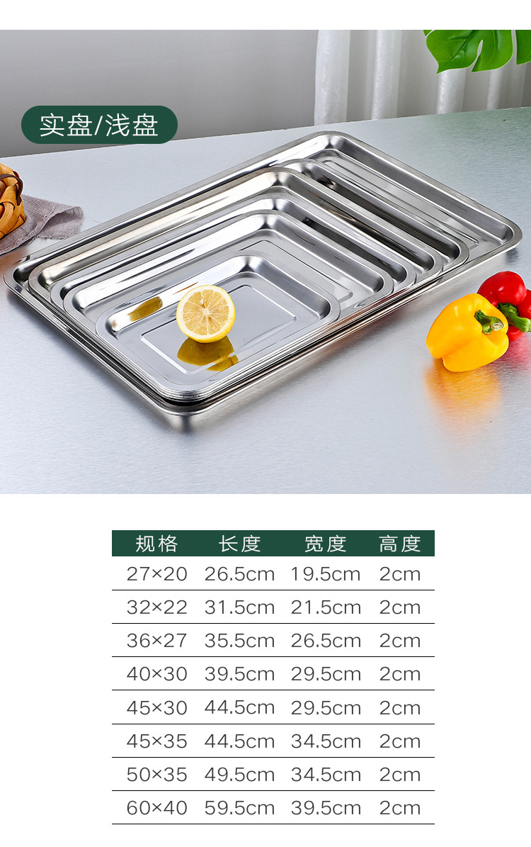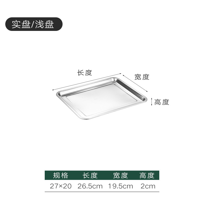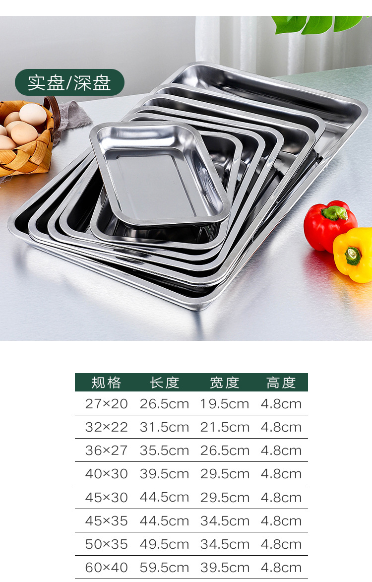 트레이 스테인레스 스틸 접시 직사각형 두꺼운 사각형 접시 찜 밥 접시 상업용 가정용 접시 만두 접시 바베큐 접시