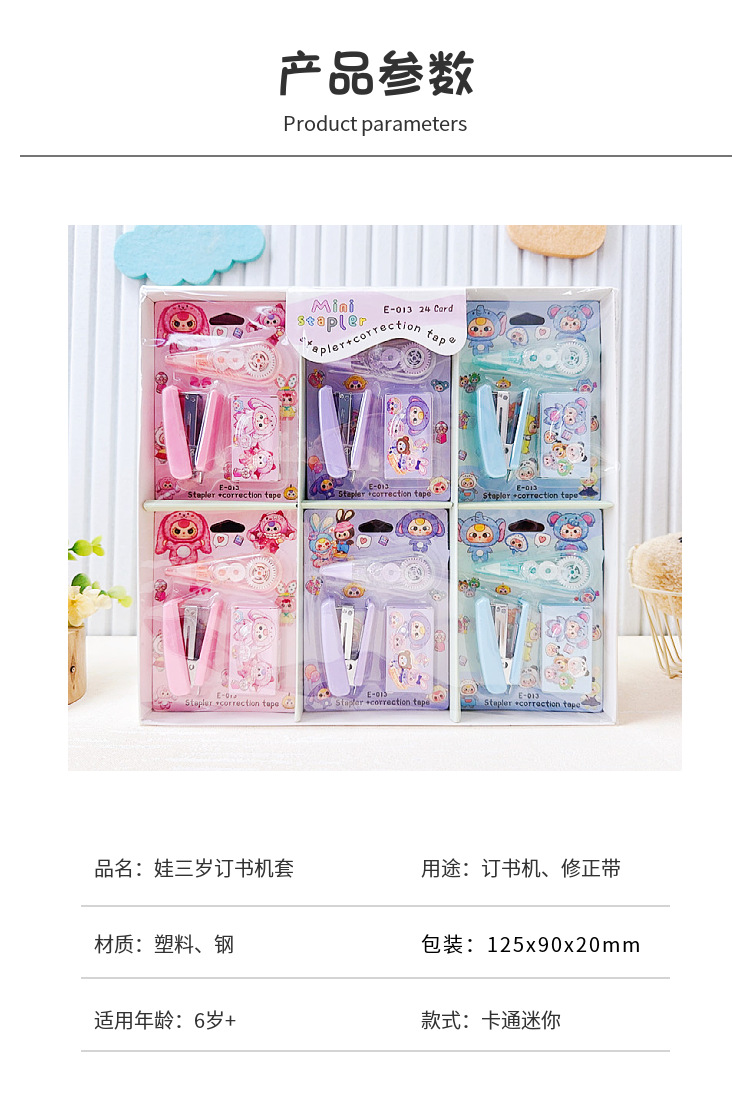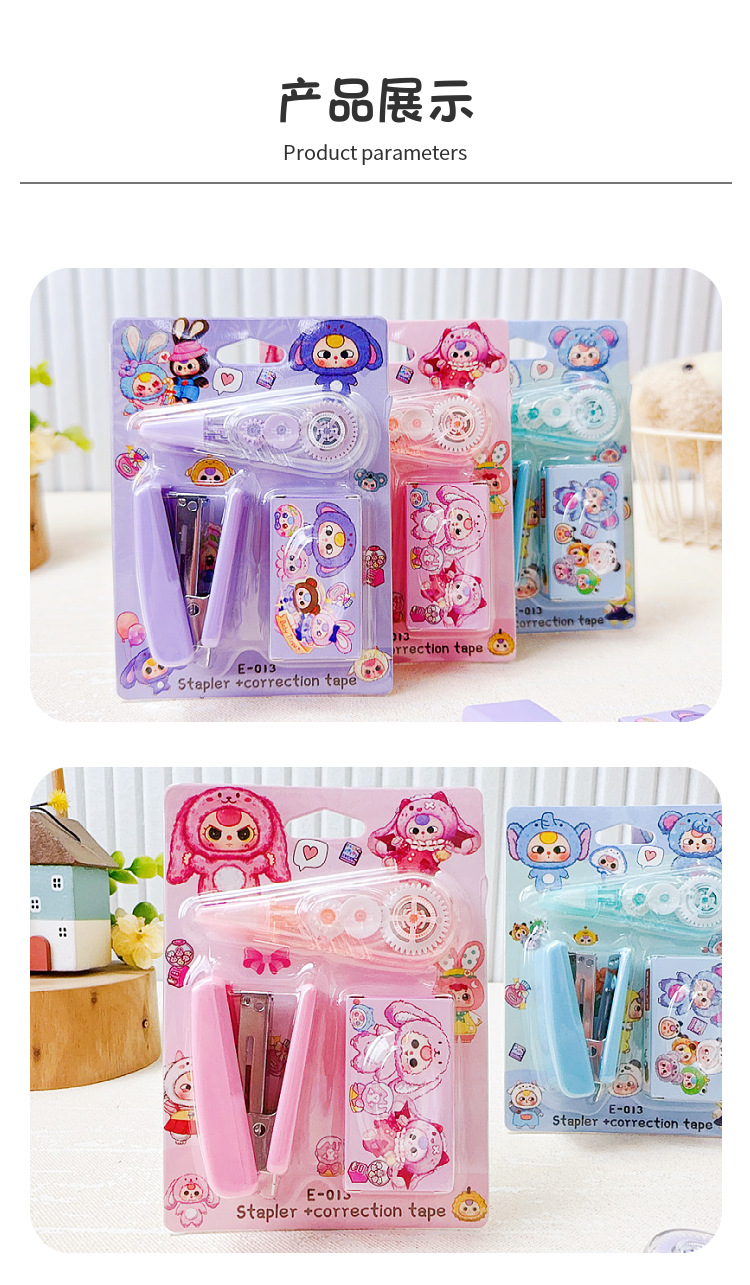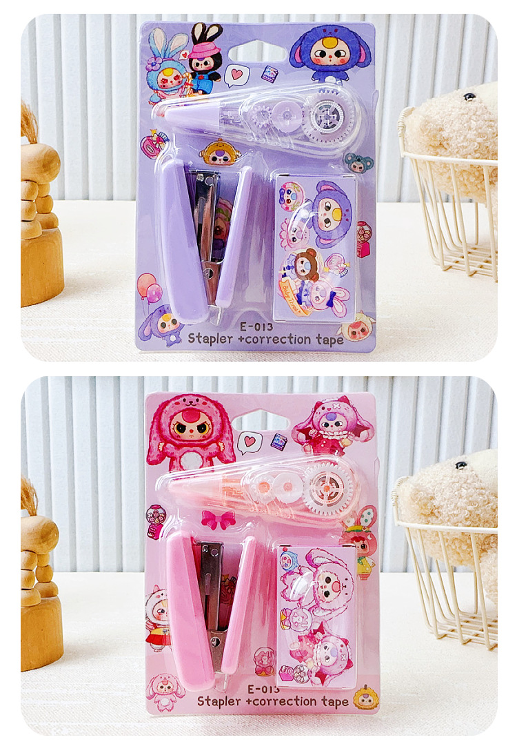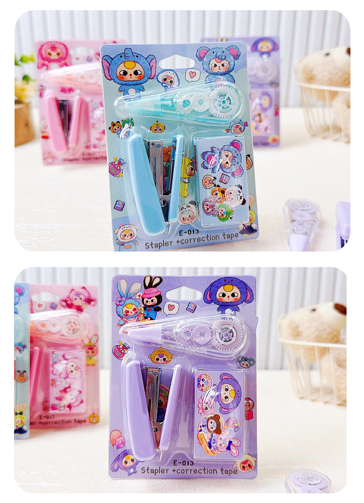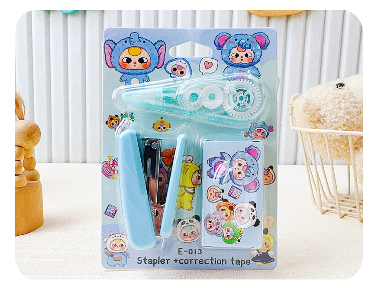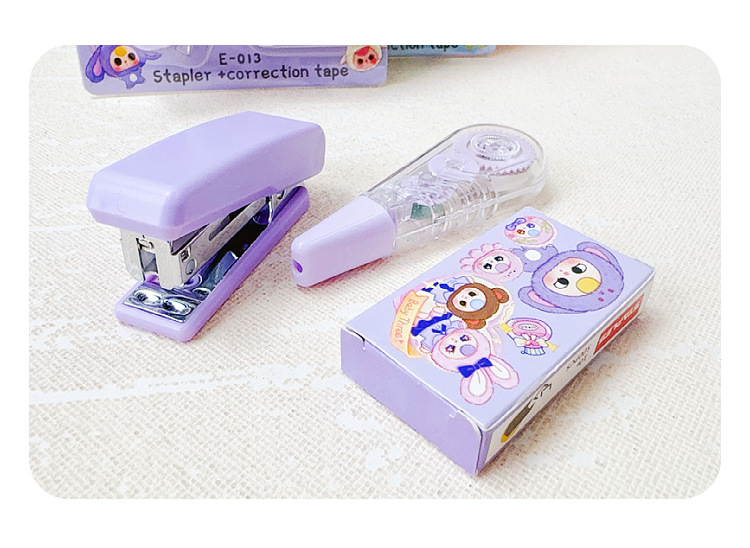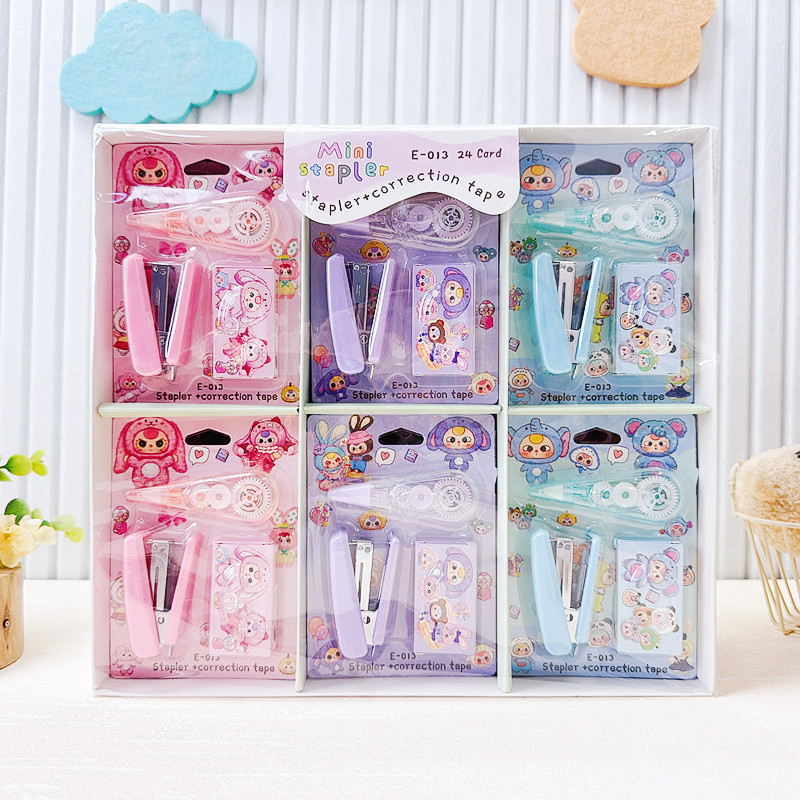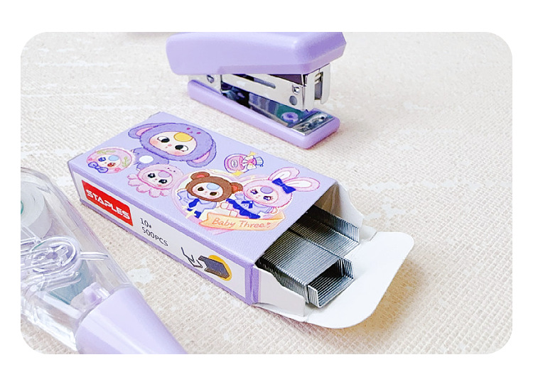 만화 새 아기 3 세 스테이플러 교정 테이프 조합 세트 미니 스테이플러 소형 휴대용 학생 문구스토어 가기