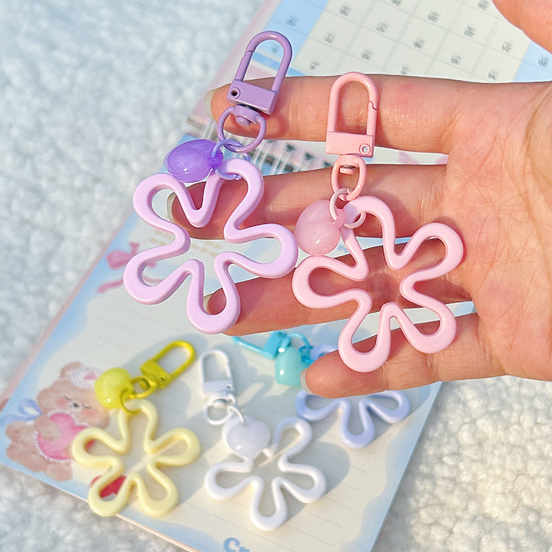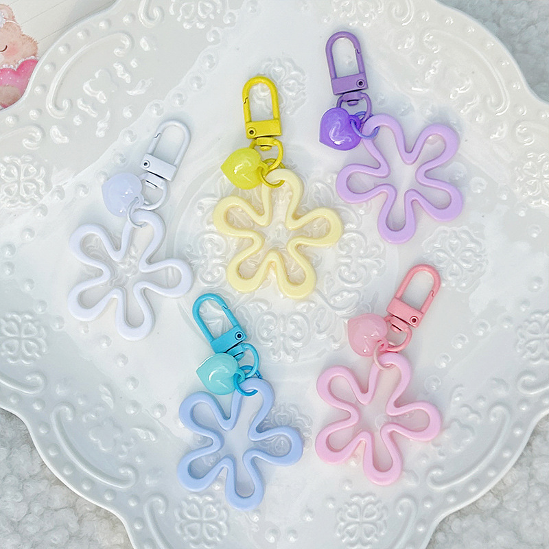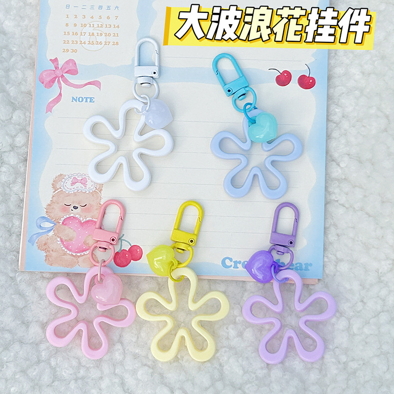 다채로운 큰 파도 꽃 키 체인 Ins 아크릴 중공 꽃 사랑 매달려 장식품 DIY 휴대 전화 체인 가방 교수형 액세서리