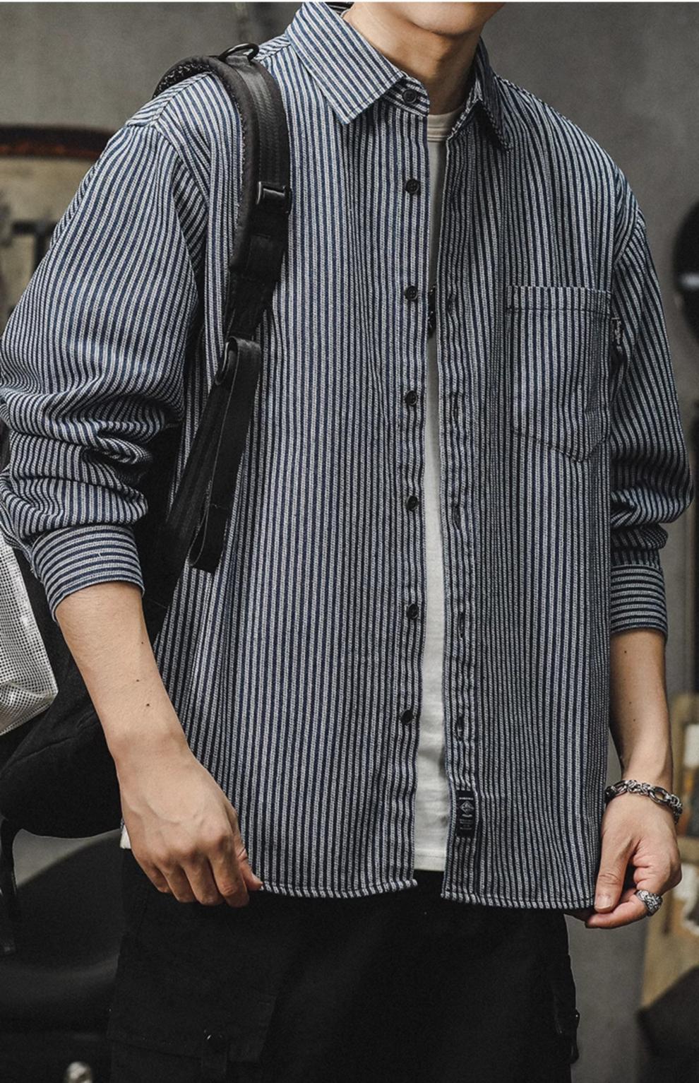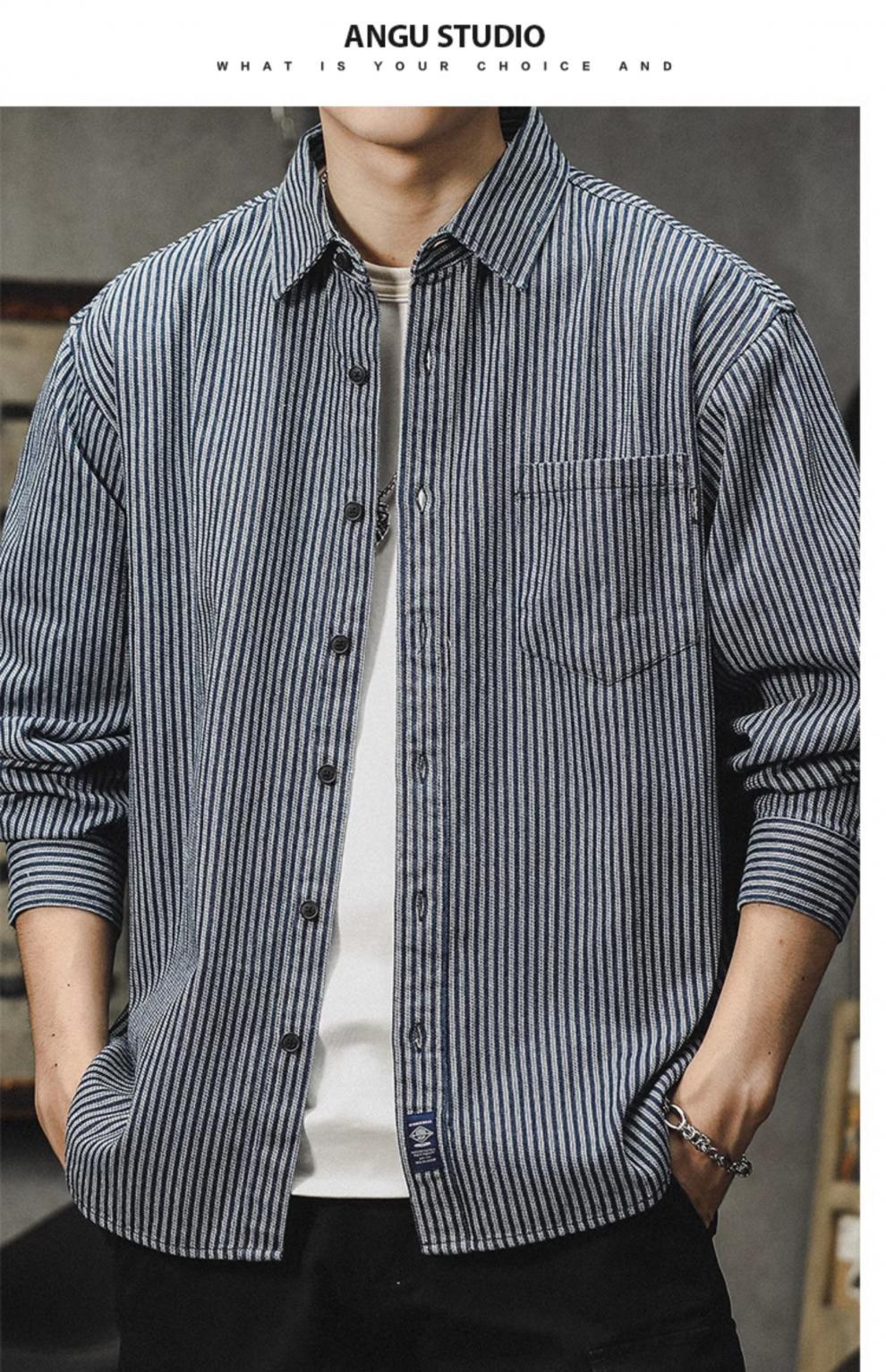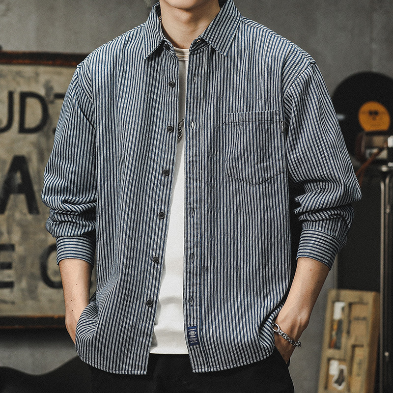 아메리칸 야피스트 스트라이프 셔츠 남성 긴팔 캐주얼 봄, 가을 하이 엔드 셔츠 일본 복고풍 헤비급 루즈 자켓