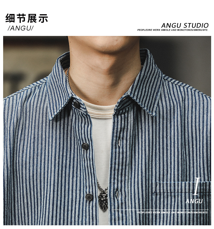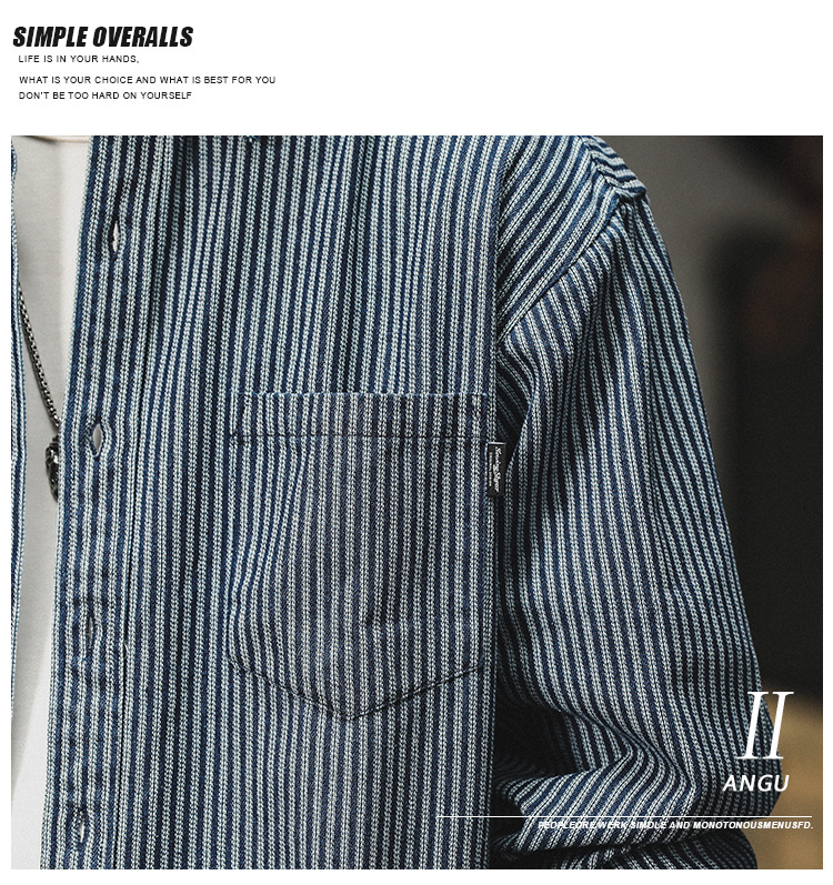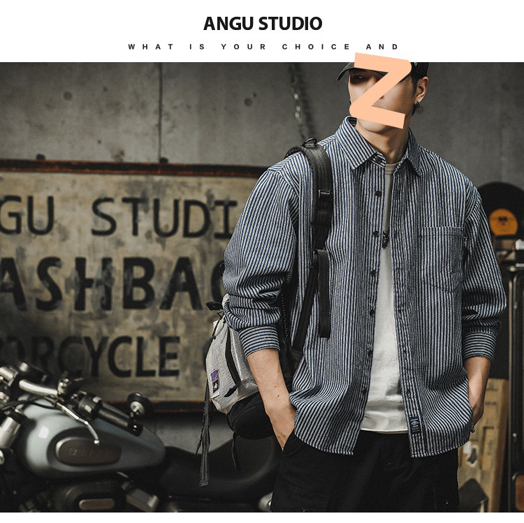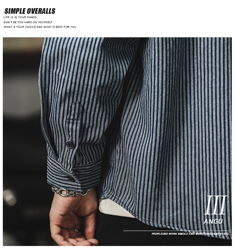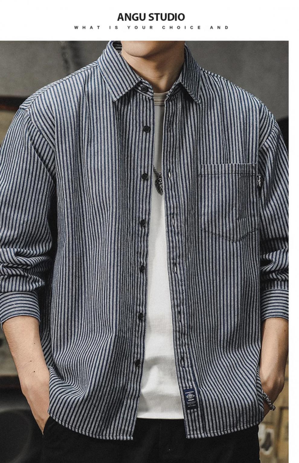 아메리칸 야피스트 스트라이프 셔츠 남성 긴팔 캐주얼 봄, 가을 하이 엔드 셔츠 일본 복고풍 헤비급 루즈 자켓