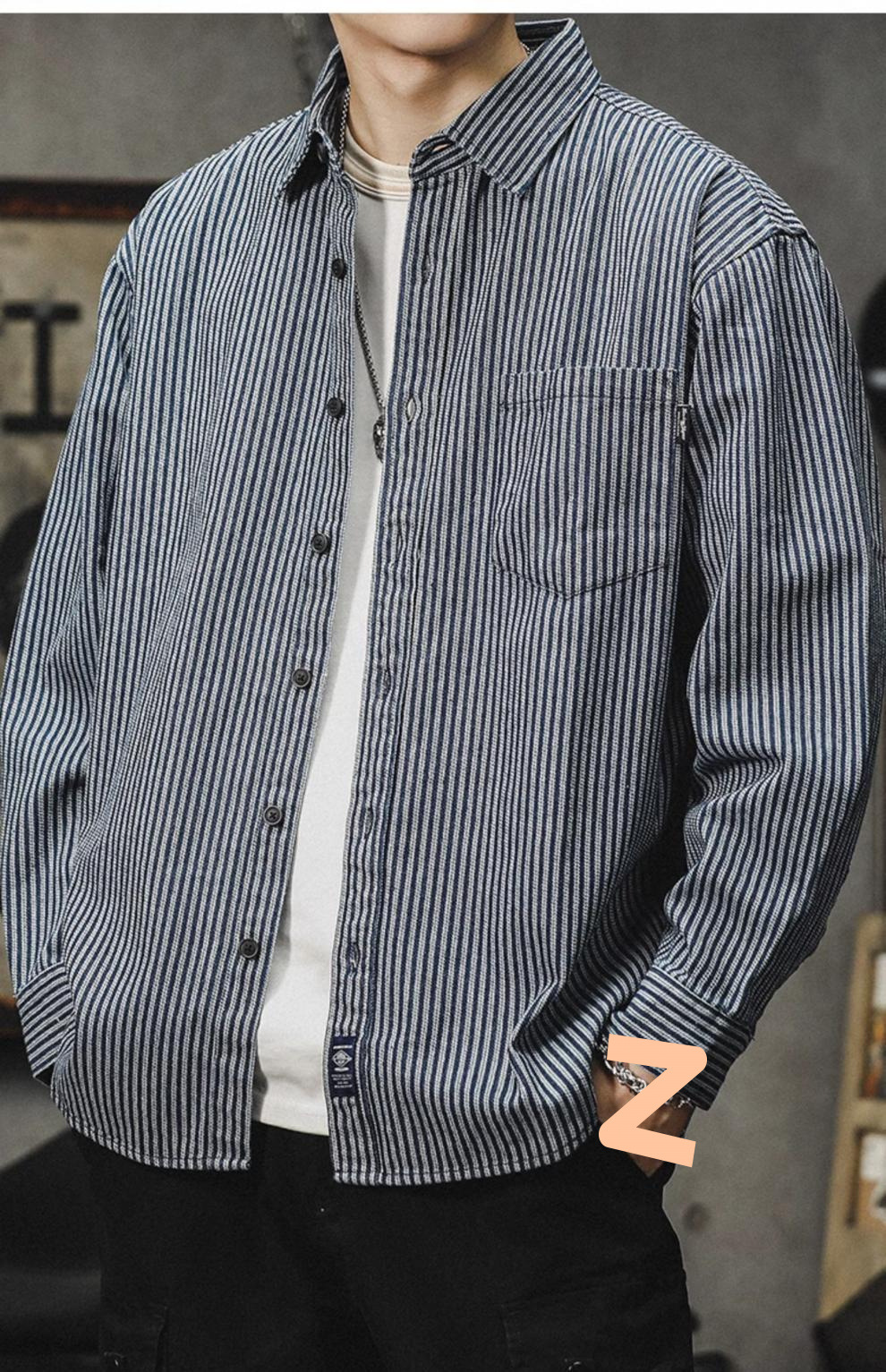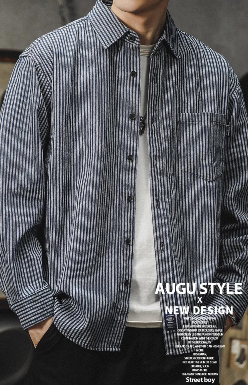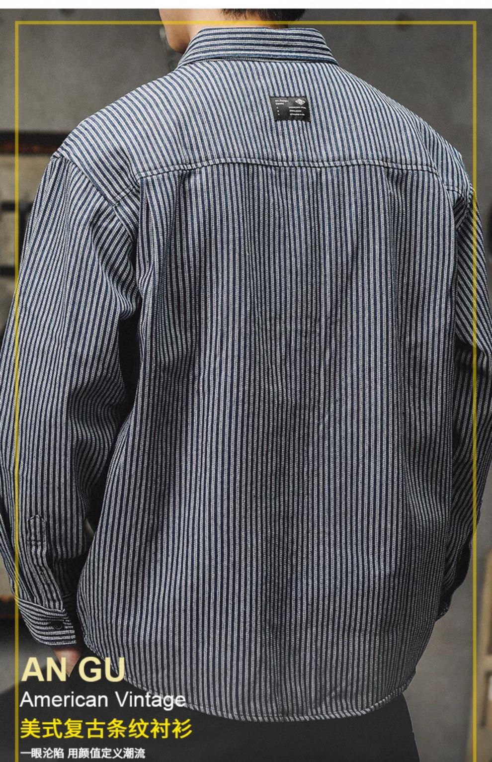 아메리칸 야피스트 스트라이프 셔츠 남성 긴팔 캐주얼 봄, 가을 하이 엔드 셔츠 일본 복고풍 헤비급 루즈 자켓스토어 가기