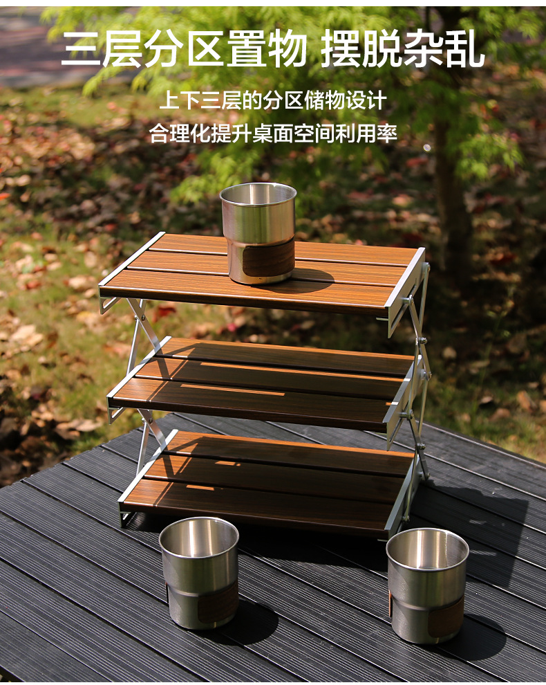 통나무 데스크탑 스토리지 랙 접이식 핸들 프로젝터 스토리지 랙 캠핑 휴대용 야외 알루미늄 합금 테이블