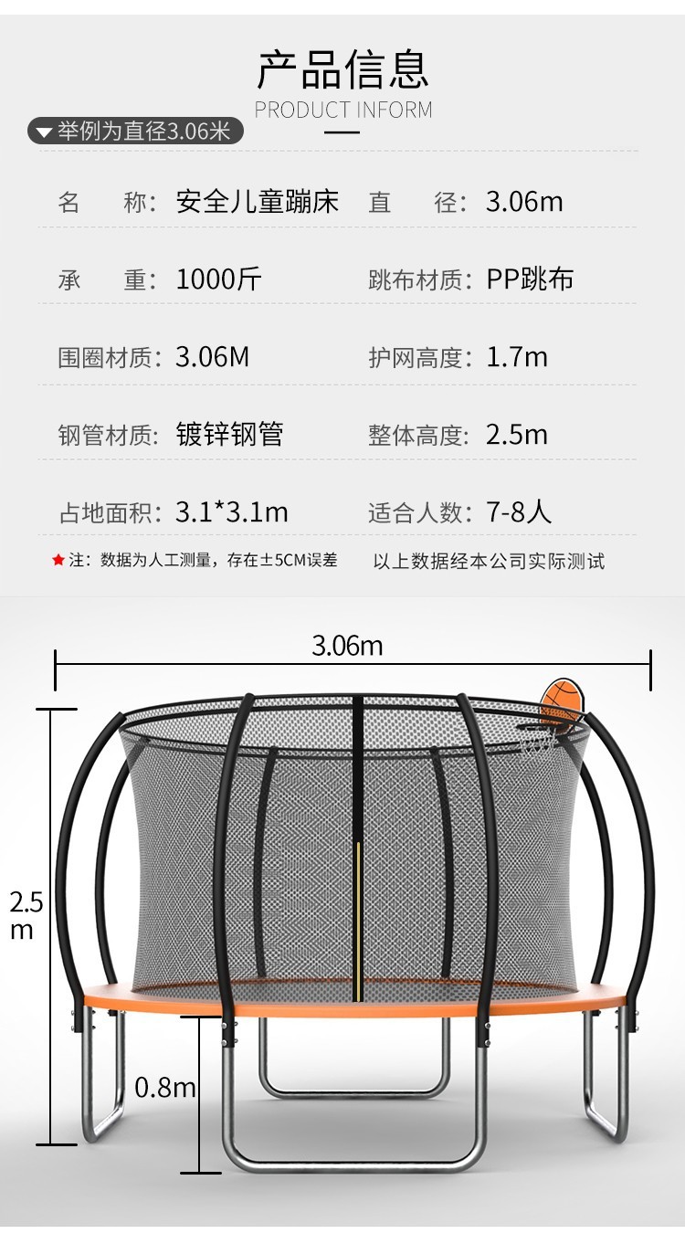 • 디럭스 8피트 2.44m 트램폴린 + 농구대 + 사다리