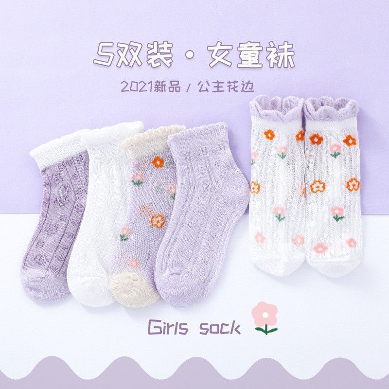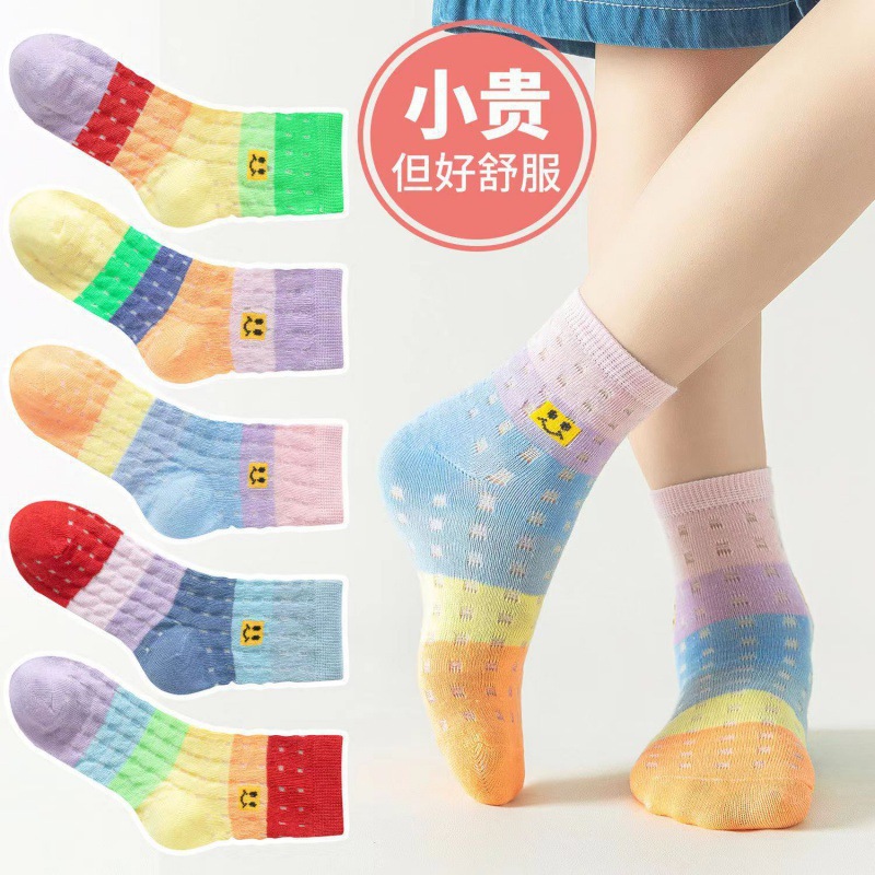 어린이 양말 여름 얇은 메쉬 통기성 캔디 컬러 소녀 스타킹 패션 레이스 본리스 코튼 미드 튜브 양말