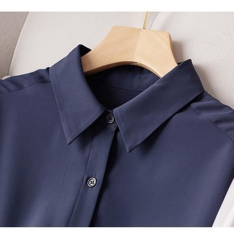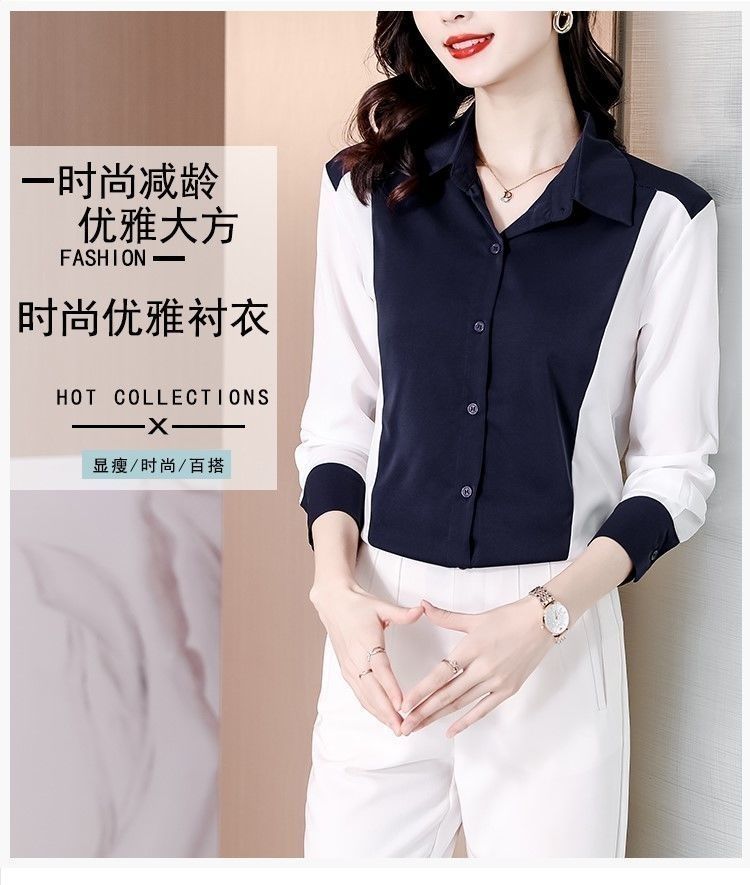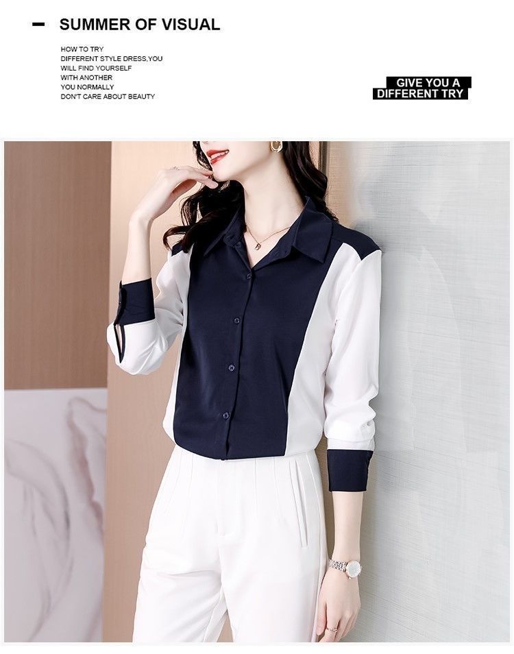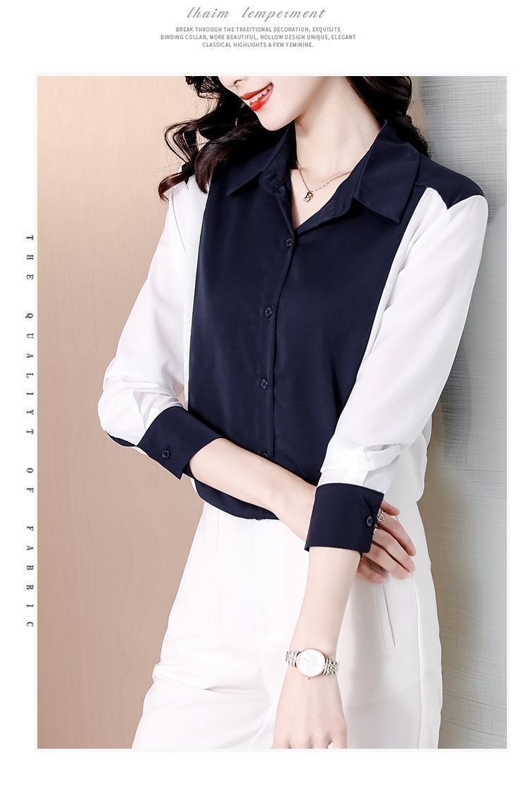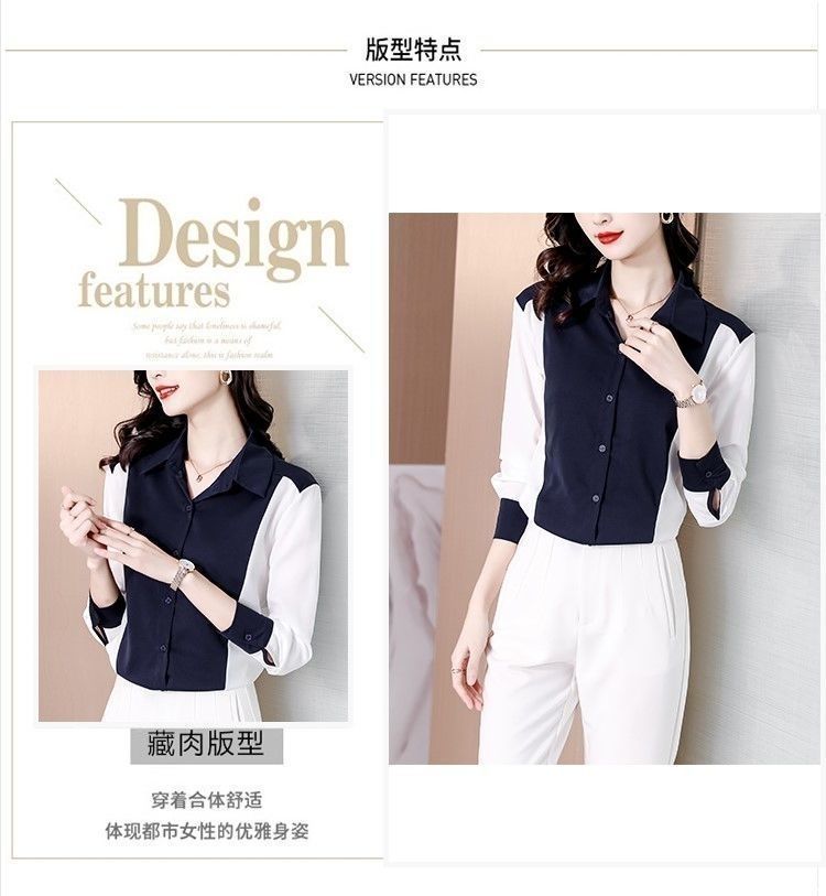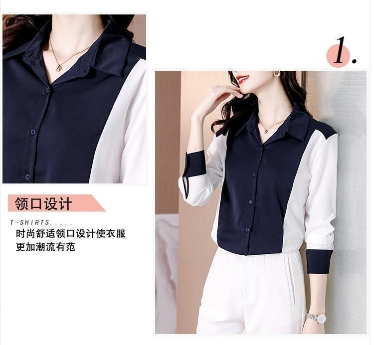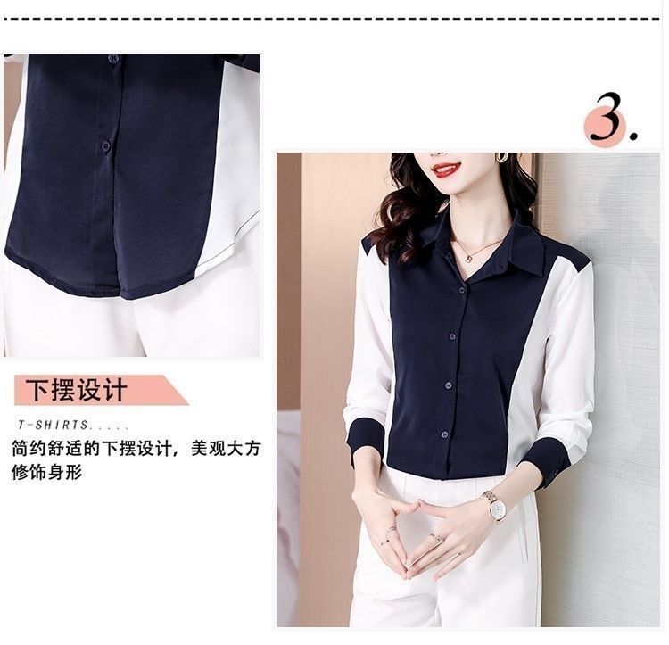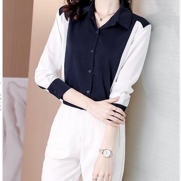 여성용 셔츠 2025 새로운 홍콩 스타일 컬러 블록 느슨한 하이 엔드 쉬폰 디자인 틈새 셔츠 패션 대비 색상 여성 의류스토어 가기