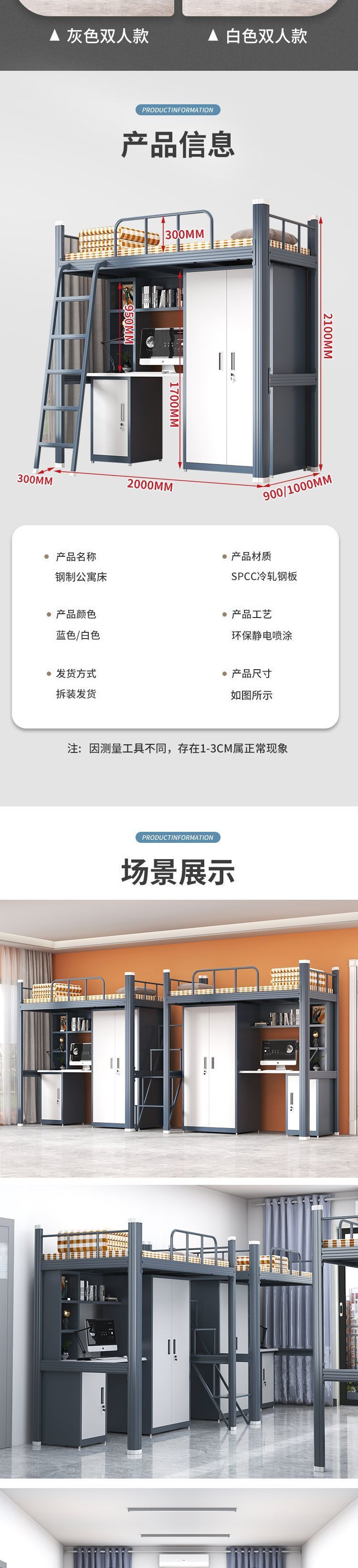 아파트 침대 대학 학생 기숙사 침대 낮은 테이블 조합 옷장 높고 낮은 침대 철 프레임 침대 기숙사 철 침대스토어 가기