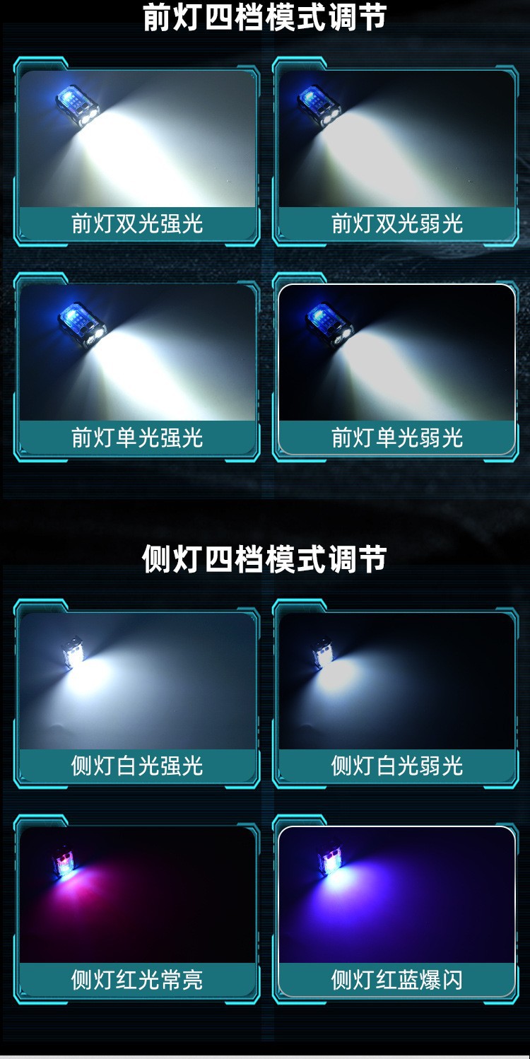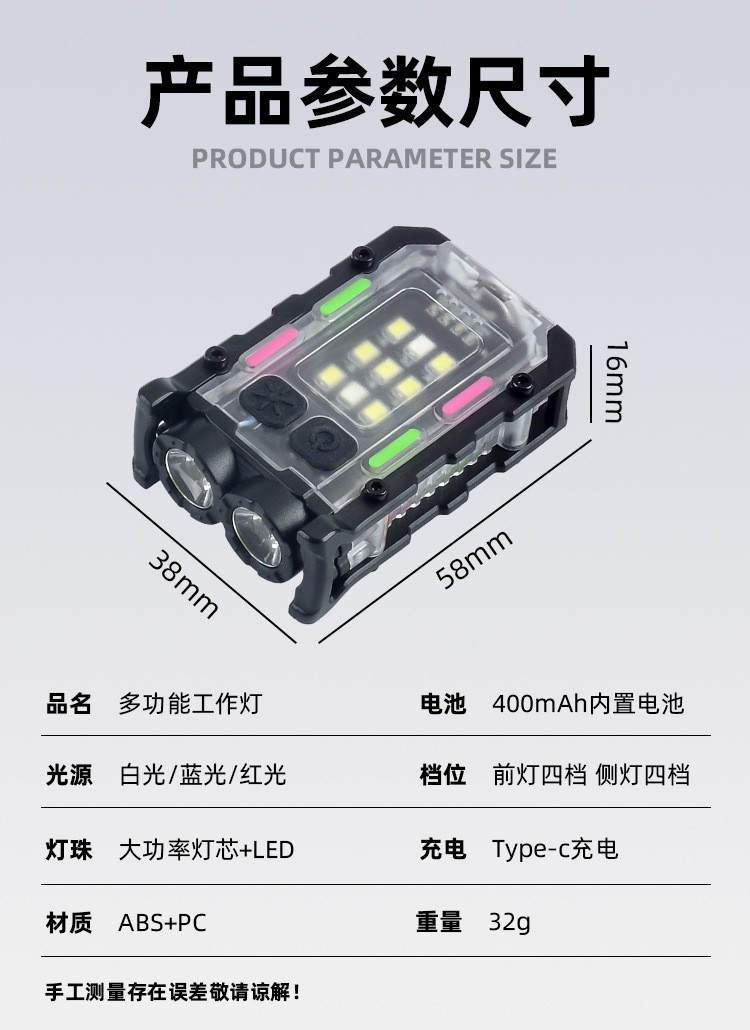 국경 간 새로운 다기능 키 체인 라이트 미니 손전등 USB 충전식 빨간색과 파란색 경고 작업 라이트 캡 클립 라이트