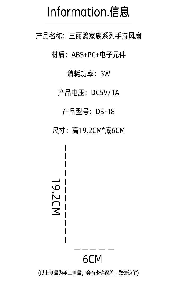 • 파차견소형선풍기 [정품인증] - 산리오 테마 소형선풍기 [귀여운 입체스티커 + 테마선물가방]