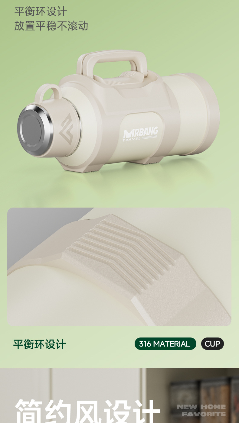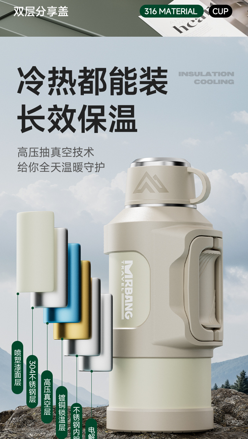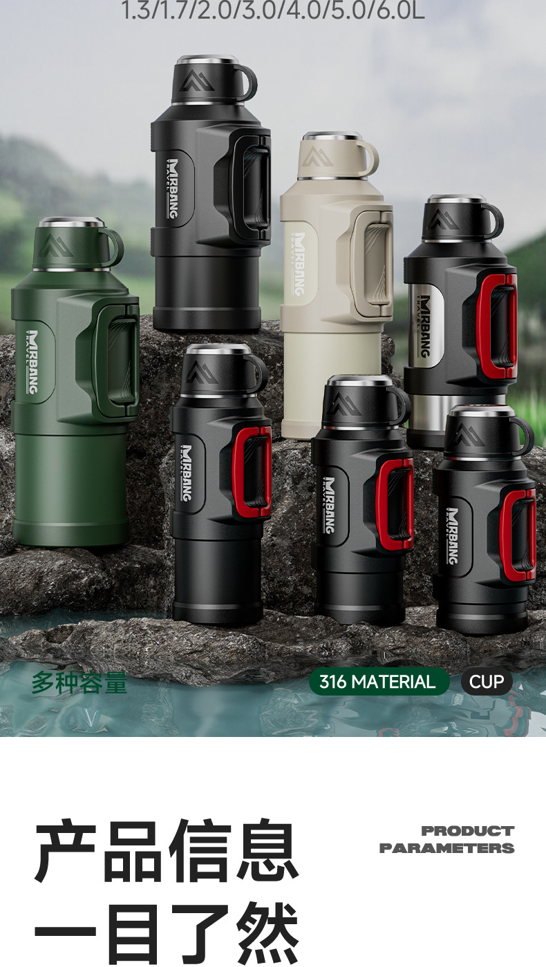 316 스테인레스 스틸 스틸 진공 대용량 단열 냄비 야외 핸들 차 분리 자동차 여행
