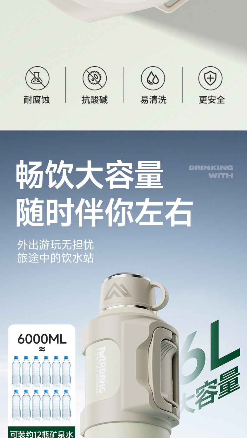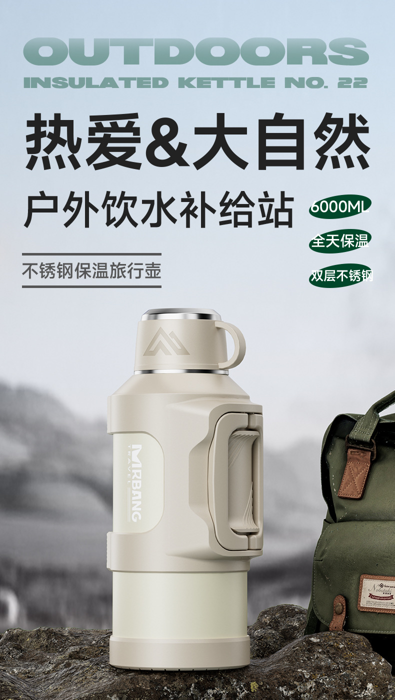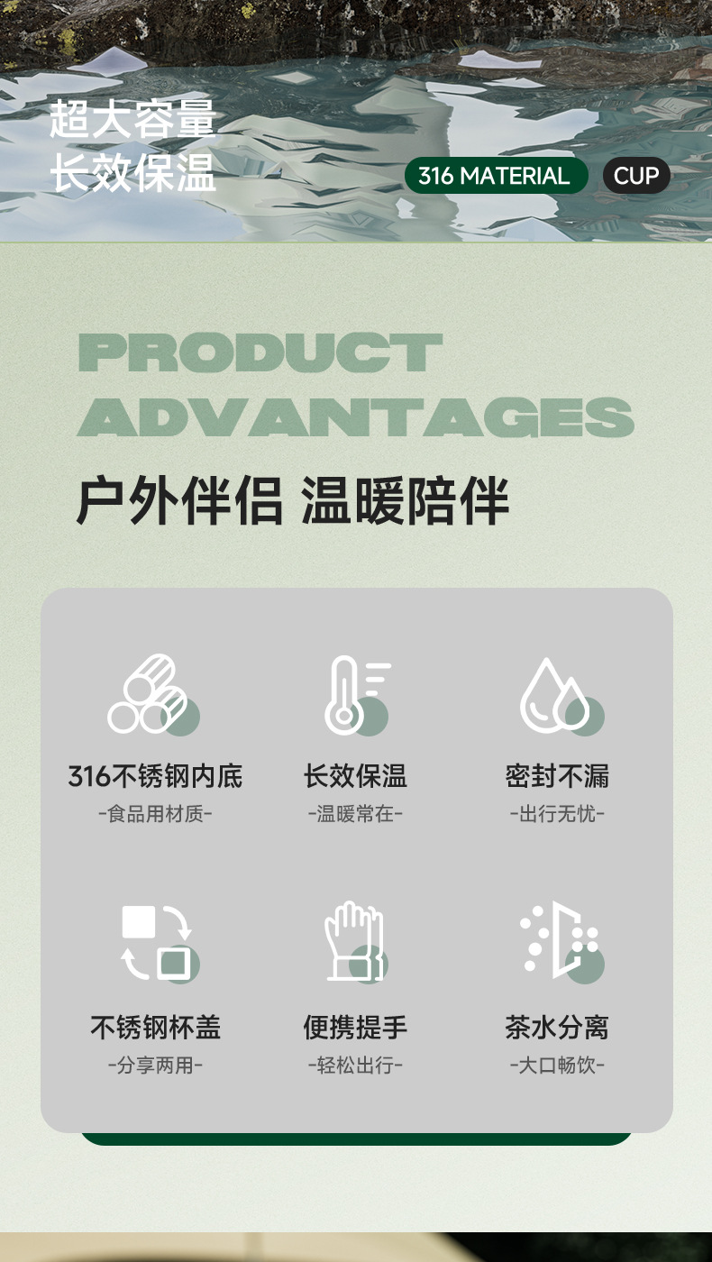 316 스테인레스 스틸 스틸 진공 대용량 단열 냄비 야외 핸들 차 분리 자동차 여행