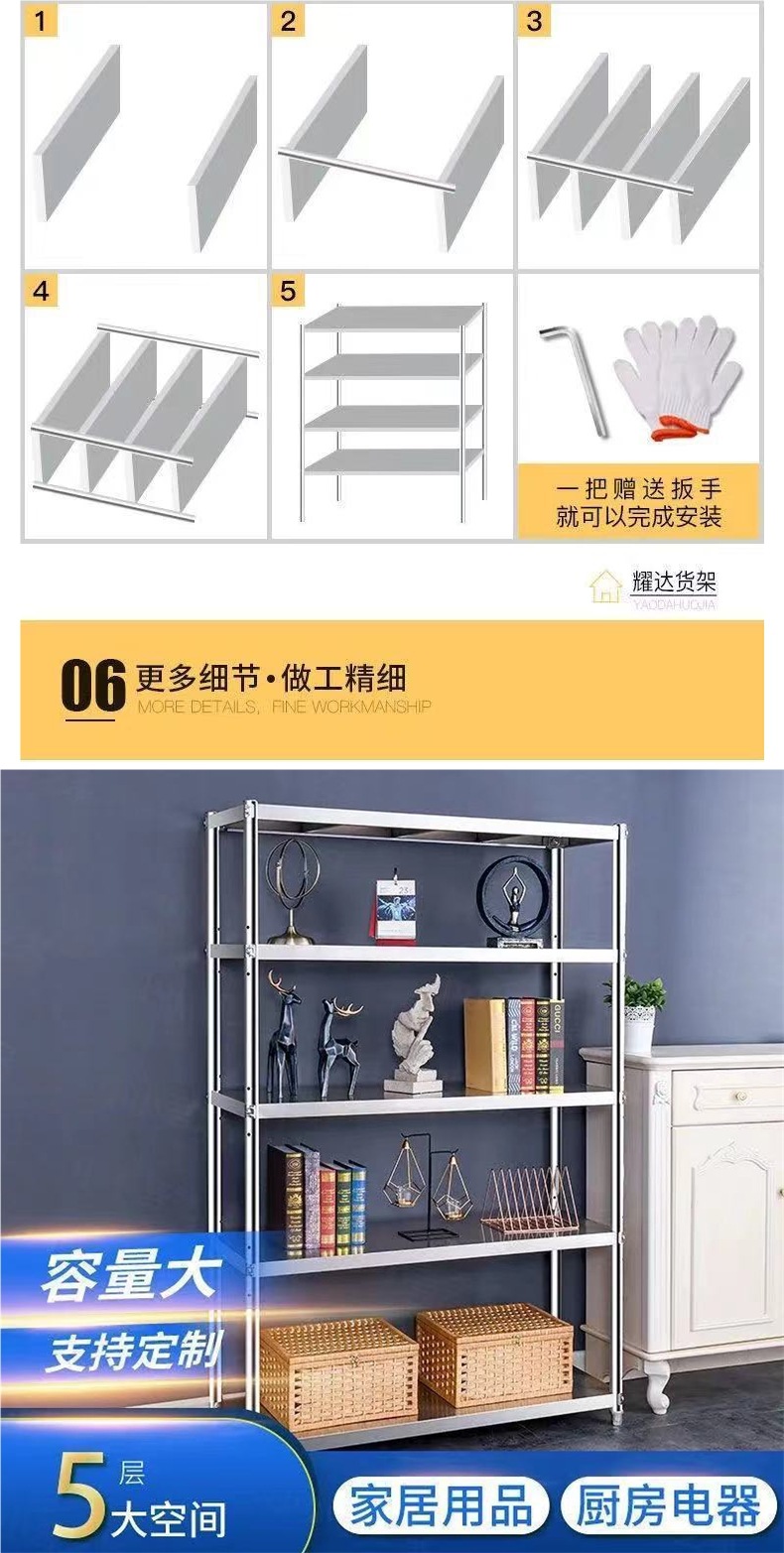 두꺼운 주방 스테인레스 스틸 바닥 스탠딩 선반 다층 스토리지 랙 선반 스토리지 랙 전자 레인지 냄비 랙스토어 가기