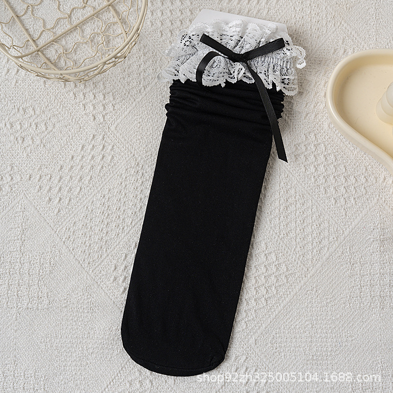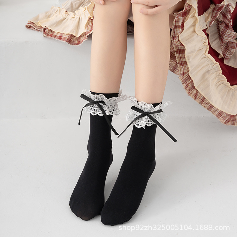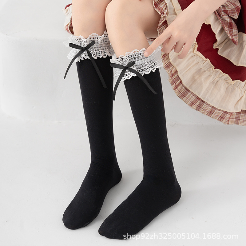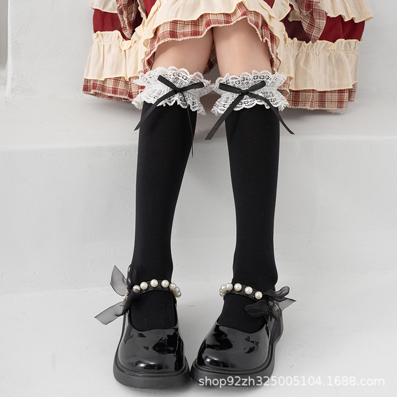 소녀 양말 여름 얇은 스타킹 레이스 보우 JK 송아지 소녀 무릎 위에 어린이 하이 튜브 여름