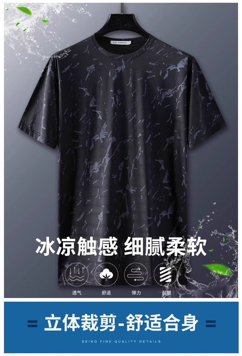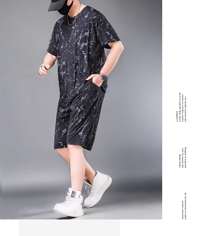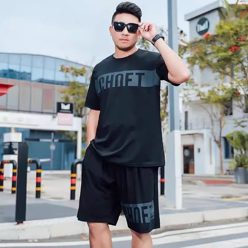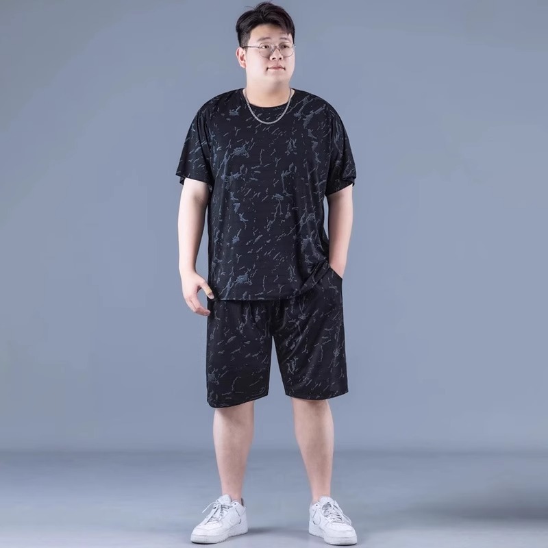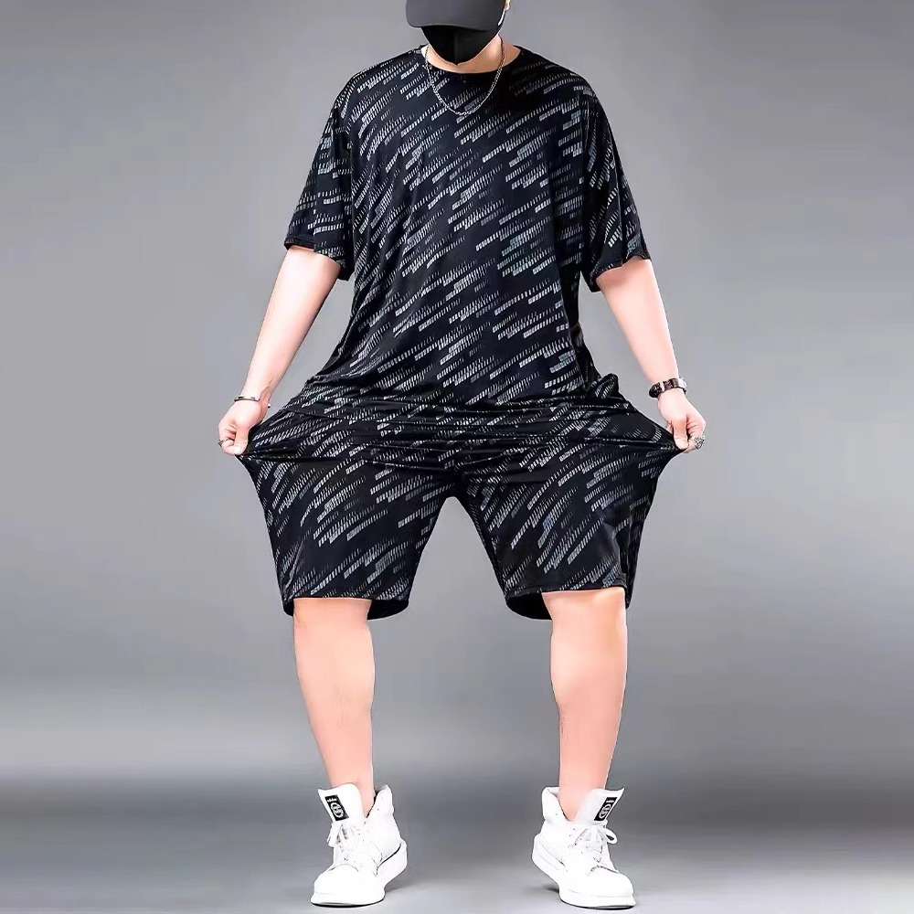 플러스 사이즈 남자 여름 남자 반팔 플러스 사이즈 뚱뚱한 크기의 느슨한 스포츠 얇은 빠른 건조 아이스 실크 세트 남자 유행스토어 가기