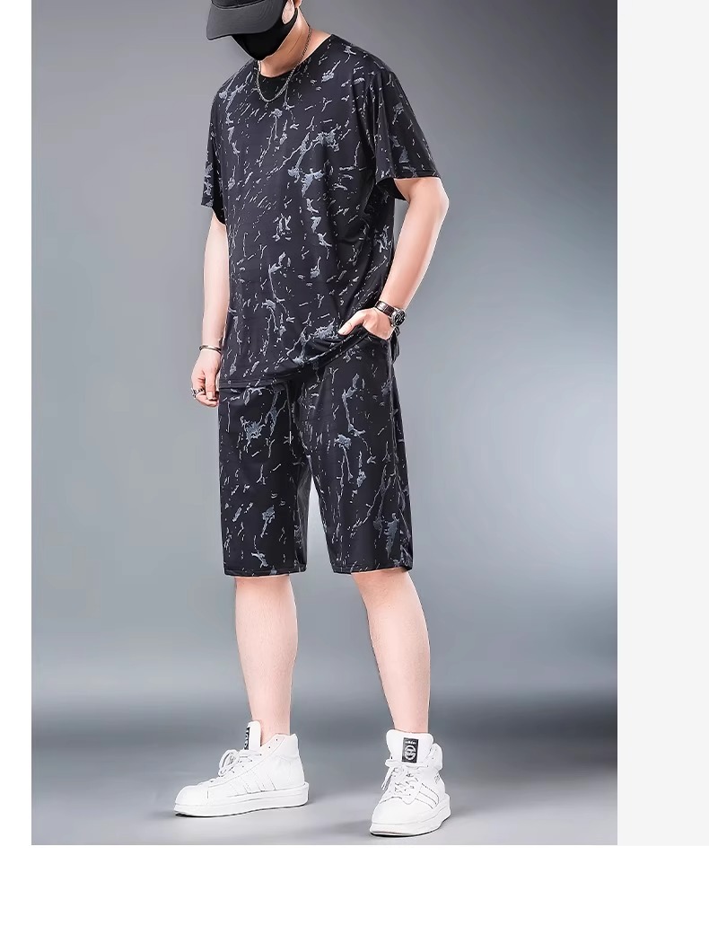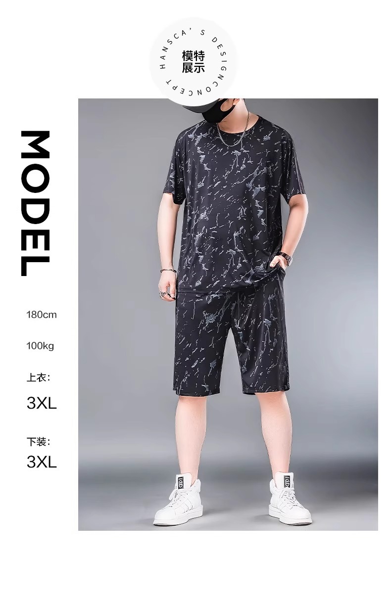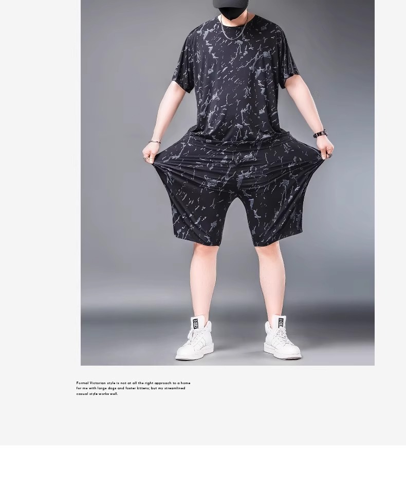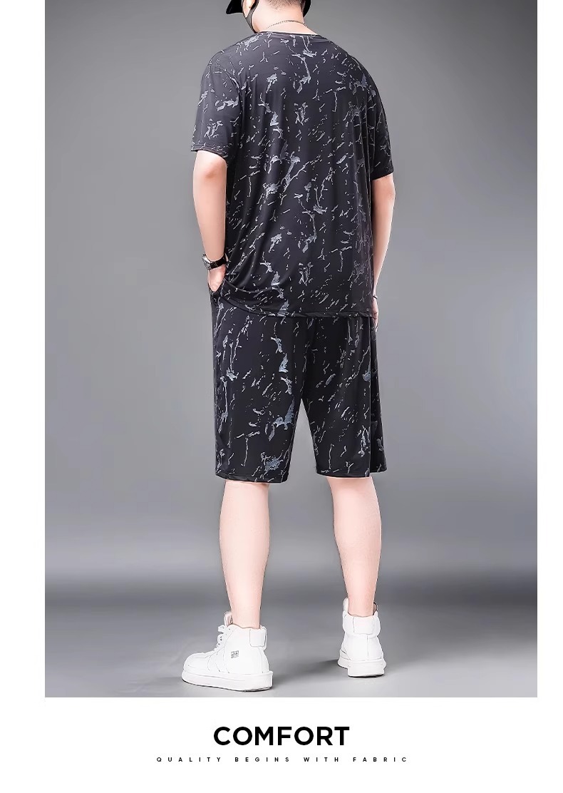 플러스 사이즈 남자 여름 남자 반팔 플러스 사이즈 뚱뚱한 크기의 느슨한 스포츠 얇은 빠른 건조 아이스 실크 세트 남자 유행스토어 가기