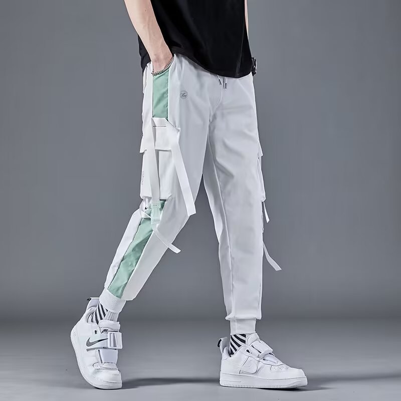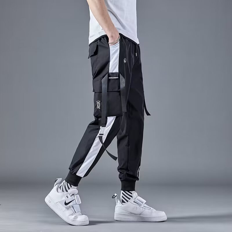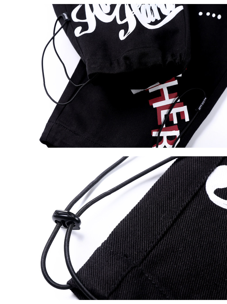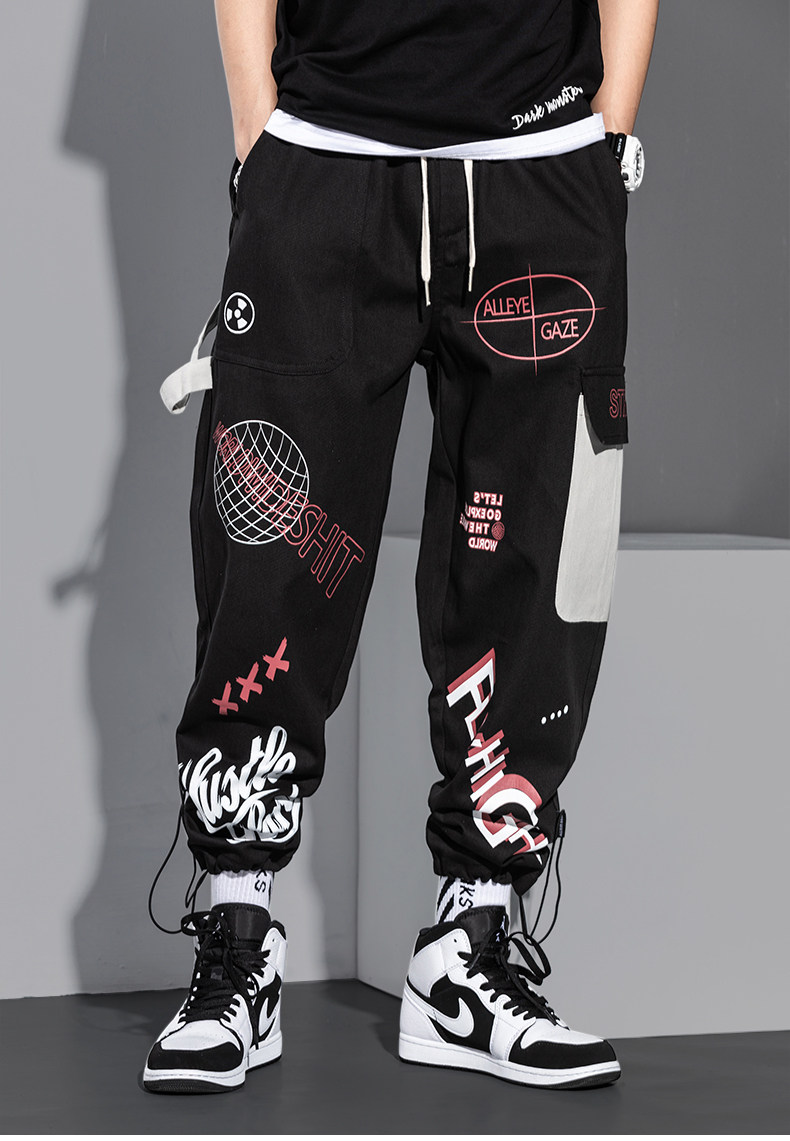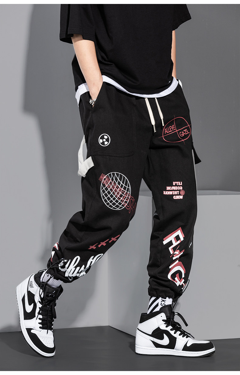 春夏季潮牌卡通字母涂鸦印花工装裤男宽松直筒休闲ins抽绳束脚裤i