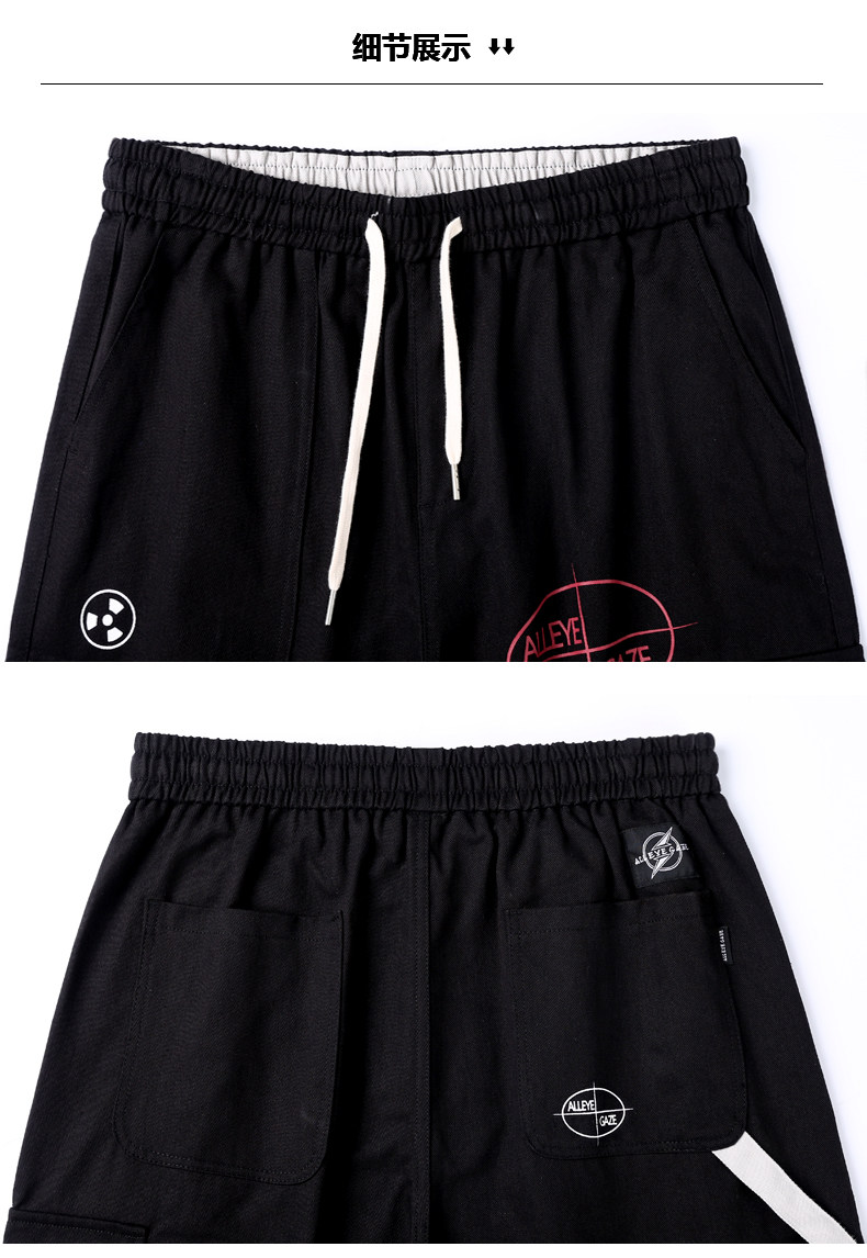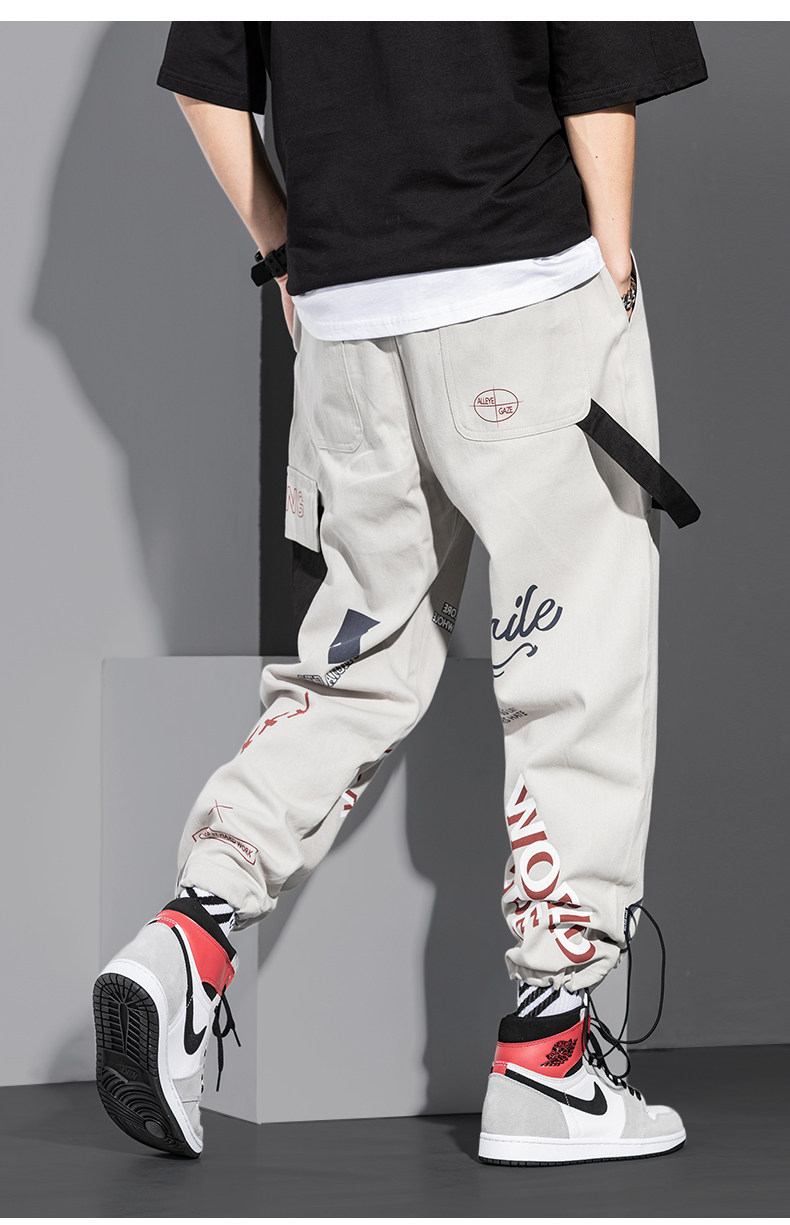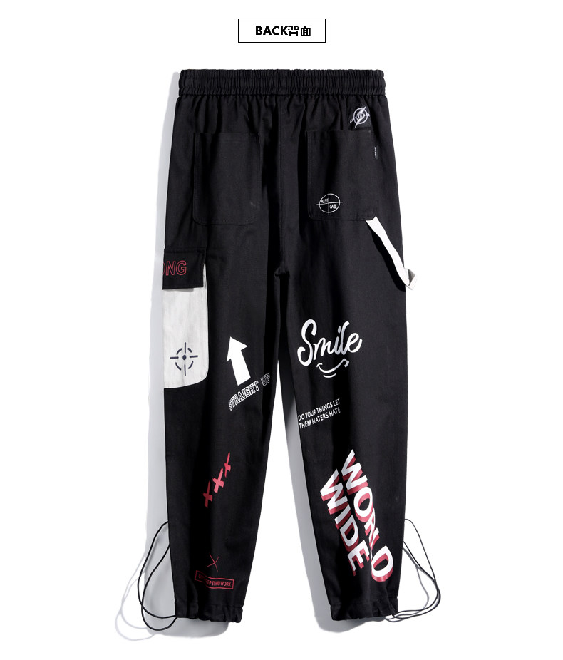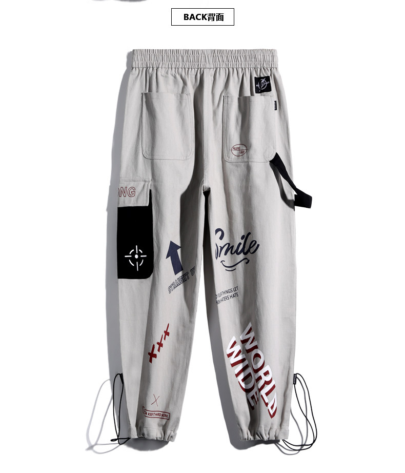 春夏季潮牌卡通字母涂鸦印花工装裤男宽松直筒休闲ins抽绳束脚裤i스토어 가기