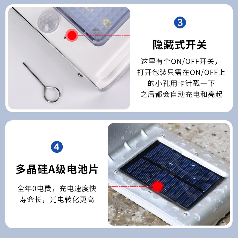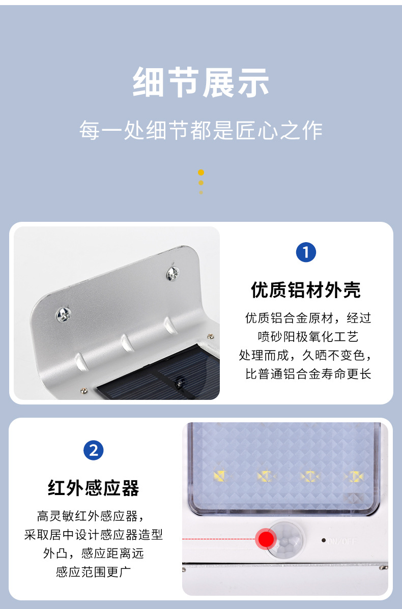 알루미늄 쉘 태양 정원 조명 방수 야외 벽 조명 홈 도어 인체 센서 조명 농촌 야외 조명스토어 가기