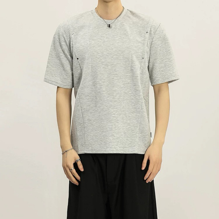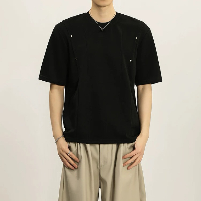 아메리칸 스타일 해체 반팔 셔츠 남자의 여름 무거운 무게 스터드 주름 최고 디자인 남성베이스 셔츠