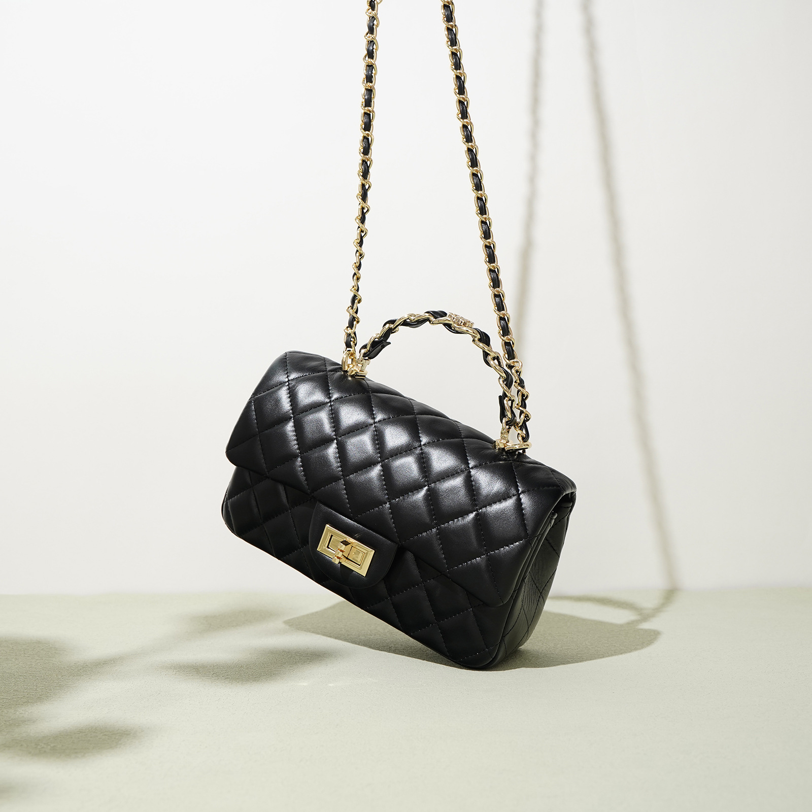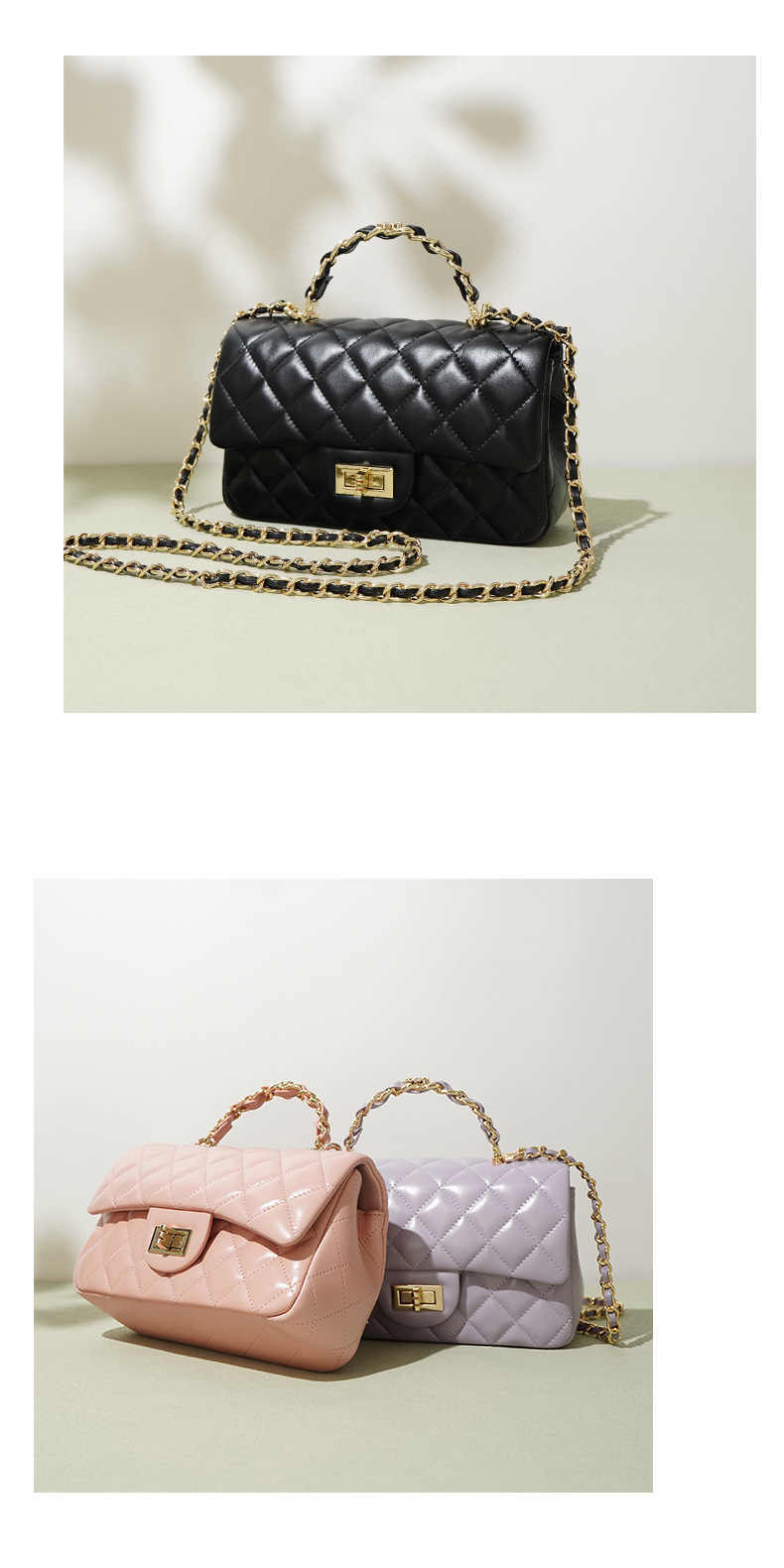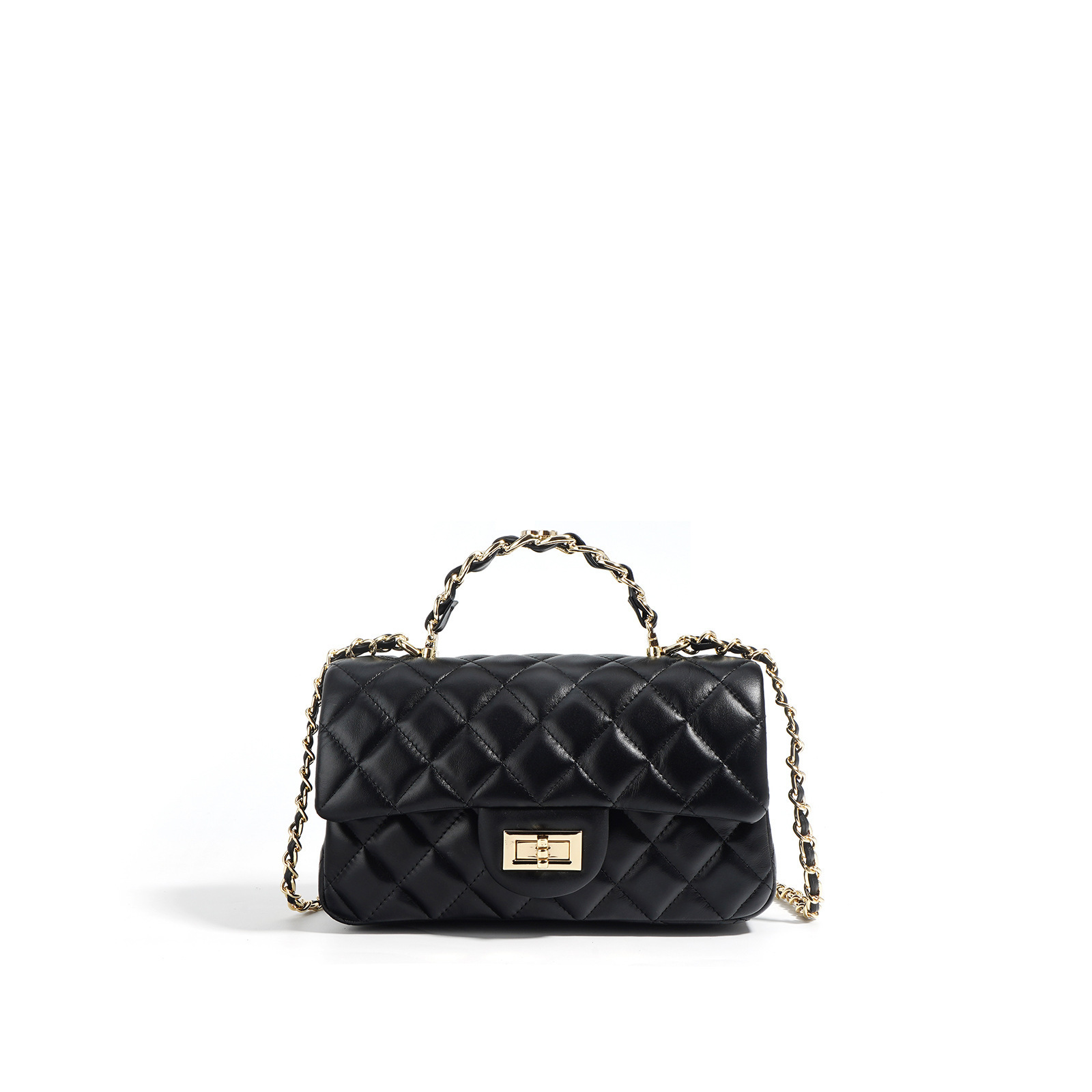 정품 가죽 2025 샤넬 스타일 Cowhide 핸드백 어깨 크로스 바디 여성 가방 마름모꼴 체인 가방 보스턴 베개 가방스토어 가기
