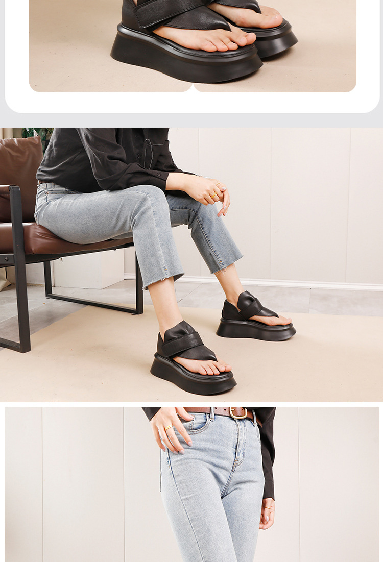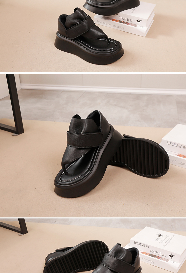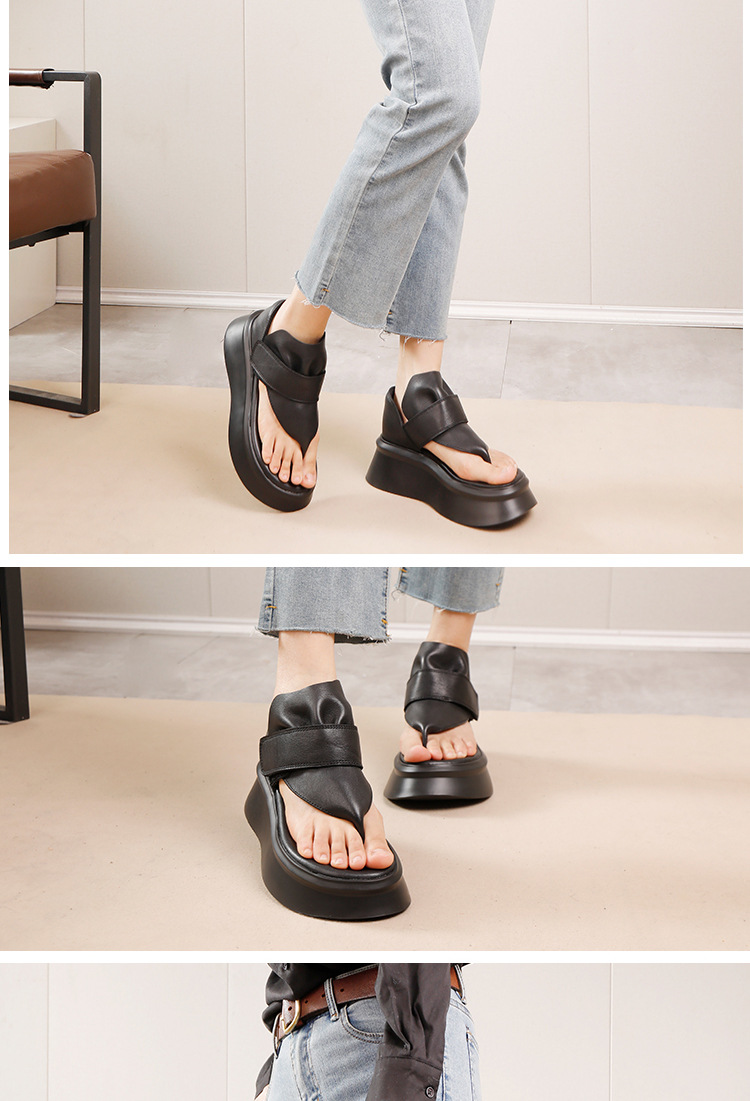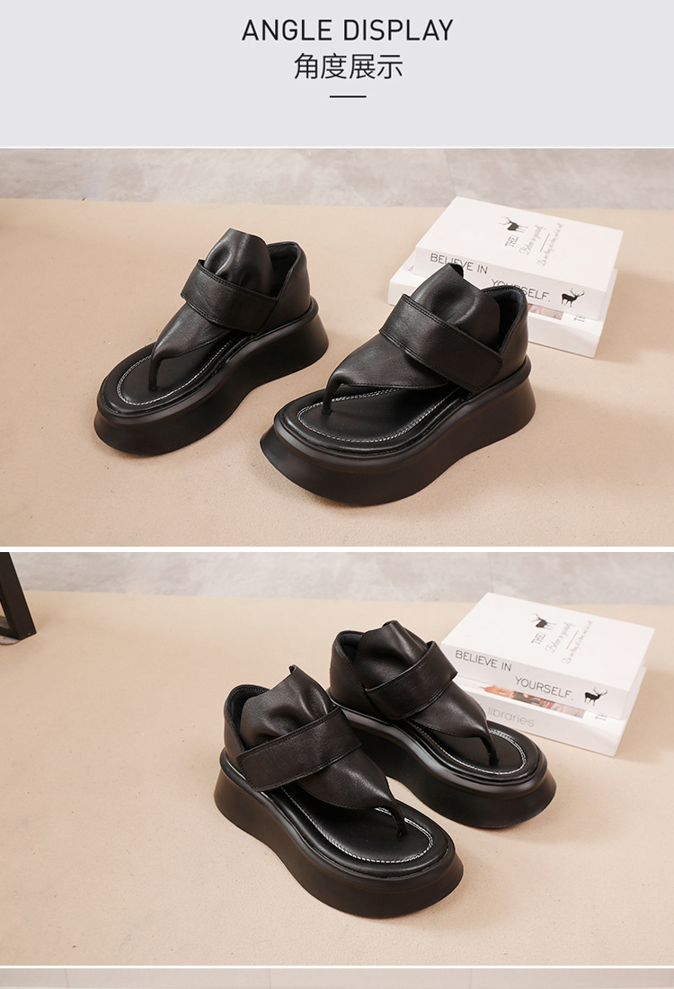 2025 여름 새로운 스타일 클립 발가락 여성 외부 샌들 탑 레이어 Cowhide 소프트 솔 올 매치 경량 두꺼운 광저우 쿨 슈즈스토어 가기