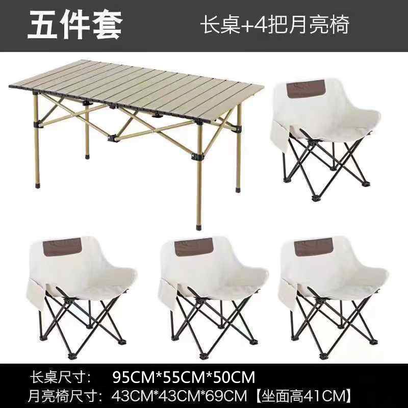 • 카키색 [3년 보증 공장 직매] - 긴 테이블 120개 + 대형 달 의자 4개, 수납 가방 및 식탁보 포함