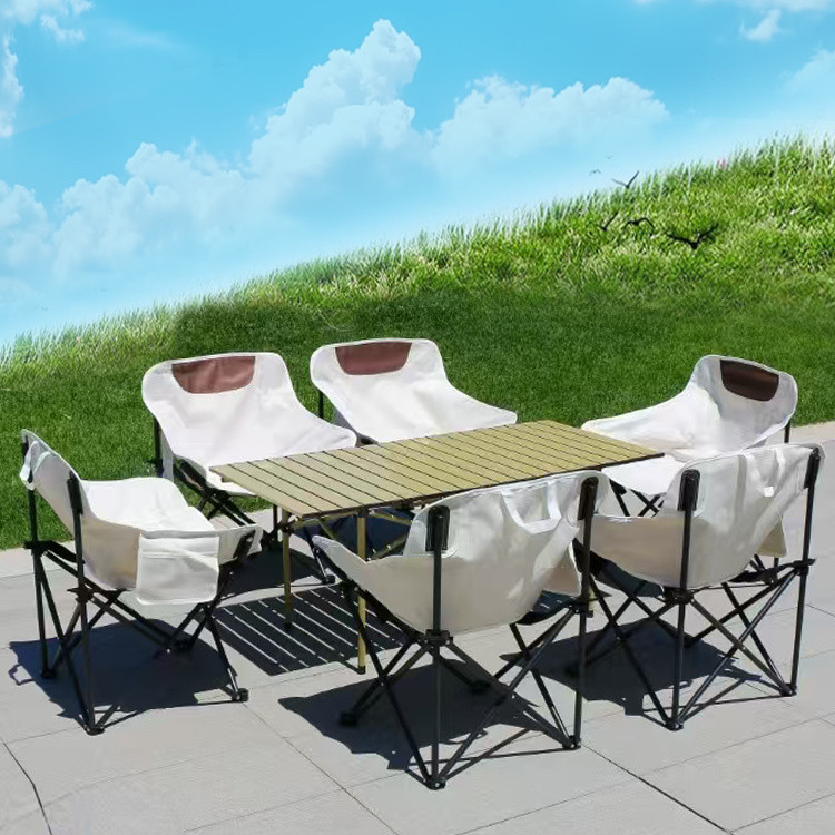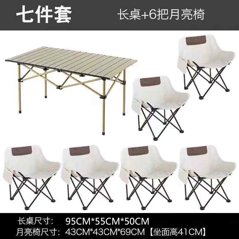 • 카키색 [3년 보증 공장 직매] - 긴 테이블 120개 + 대형 달 의자 6개, 수납 가방 및 식탁보 포함