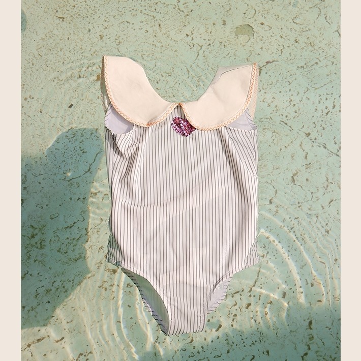 2025년 여름 신상 여아용 스팽글 자수 스트라이프 원피스 수영복 아동용 투피스 세트 한국 스타일 디자인스토어 가기