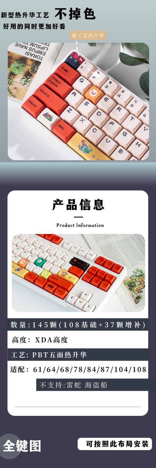 마리오 키 캡 145 키 xda 높이 승화 pbt 키 캡 적응 61/87/104/108 기타스토어 가기