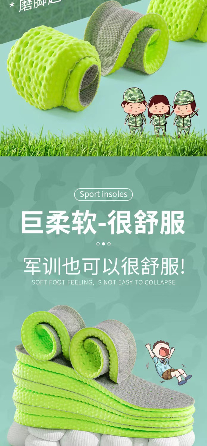 부스트 스톰핑 느낌 남녀 슈퍼 소프트 라텍스 스포츠 러닝 쇼크 흡수 농구 군사 훈련 롱 스테이션 피곤하지 않은 PU Insoles