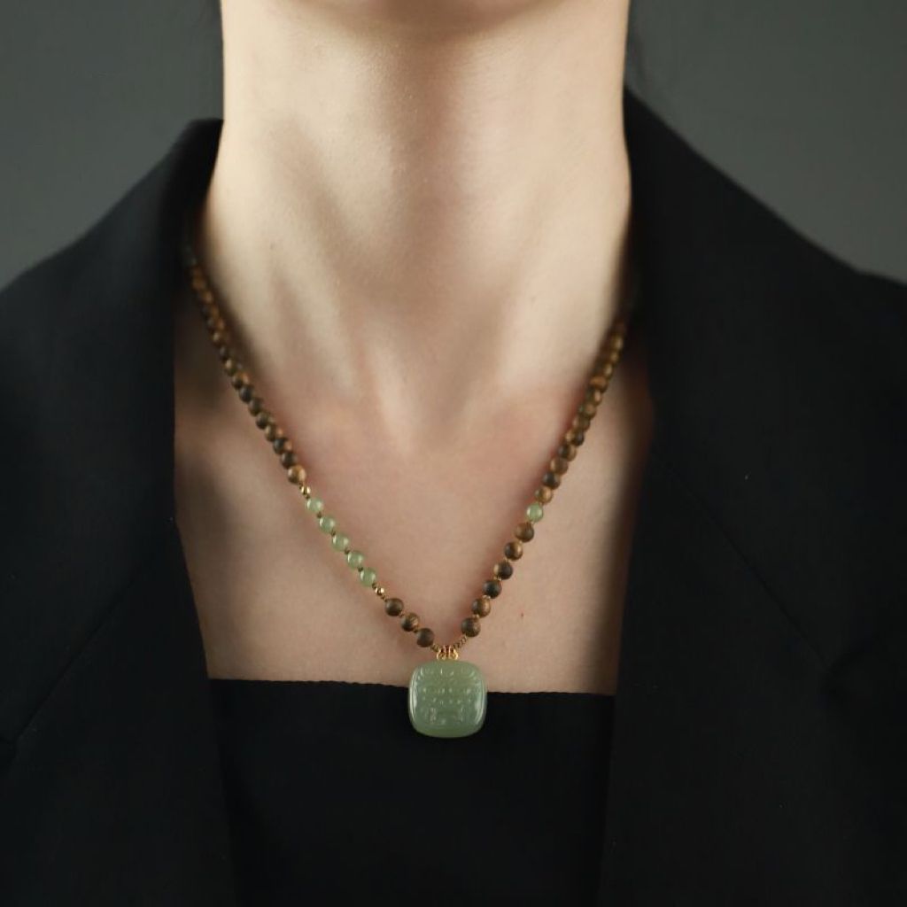 Hetian Jade Buckle 펜던트 목걸이 Qingshui Daijin Clavicle Chain 여성의 새로운 중국 스타일 Aquilarius Sinan 자연 검은 하늘스토어 가기