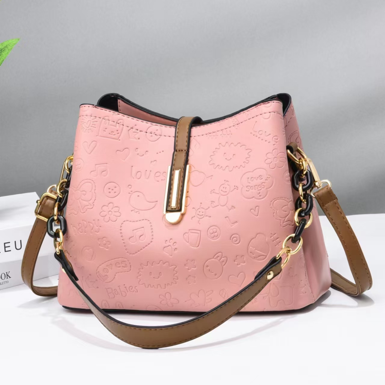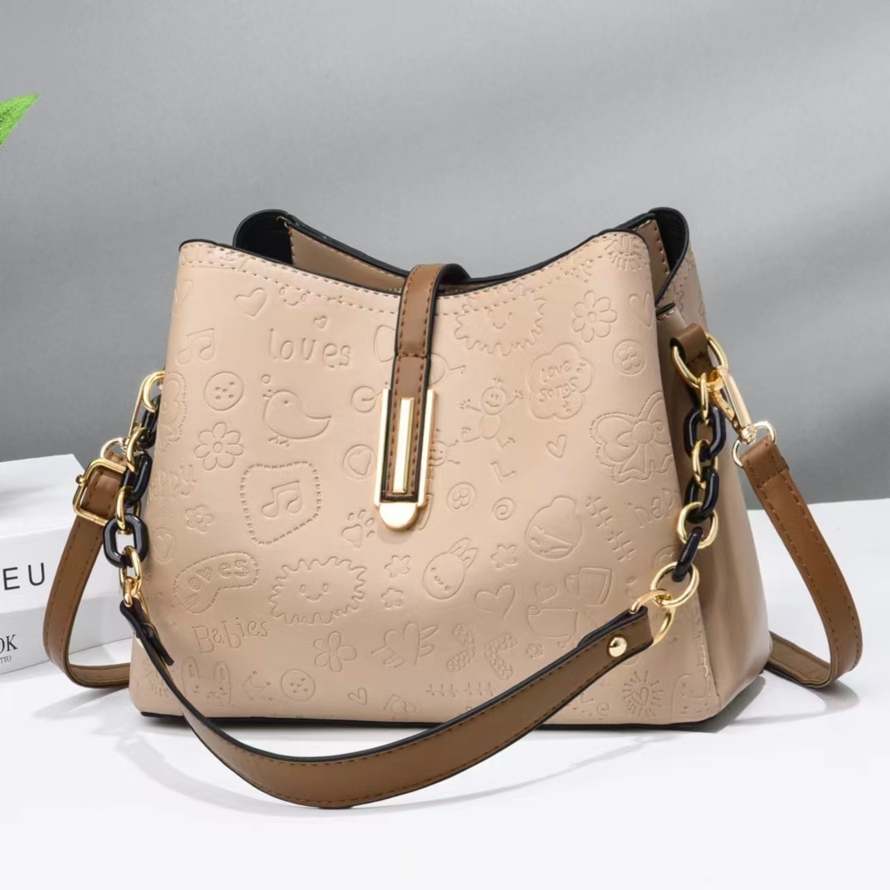 대외 무역 여성용 가방 프린트 버킷 백 심플 패션 핸드백 다층 대용량 다용도 실용적인 싱글 숄더 크로스 바디 백