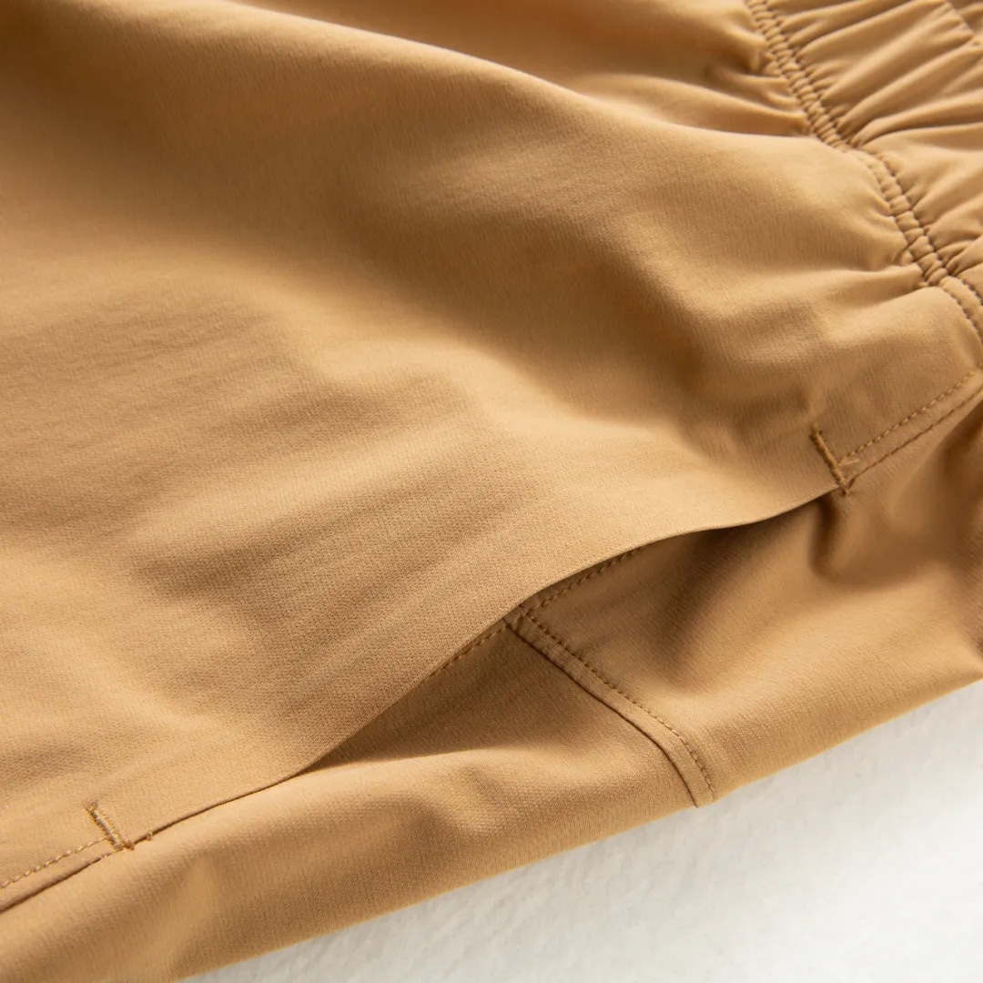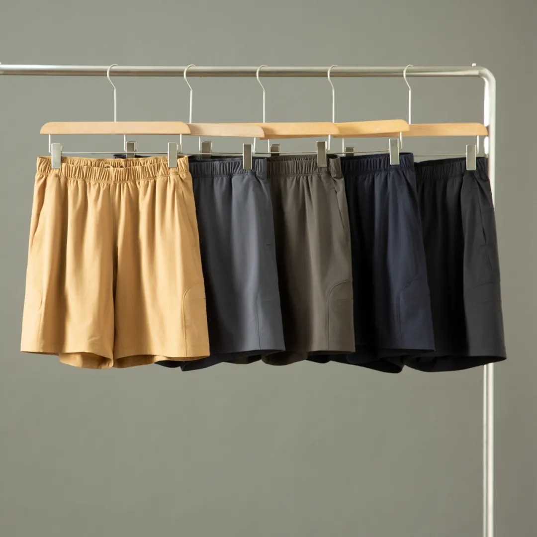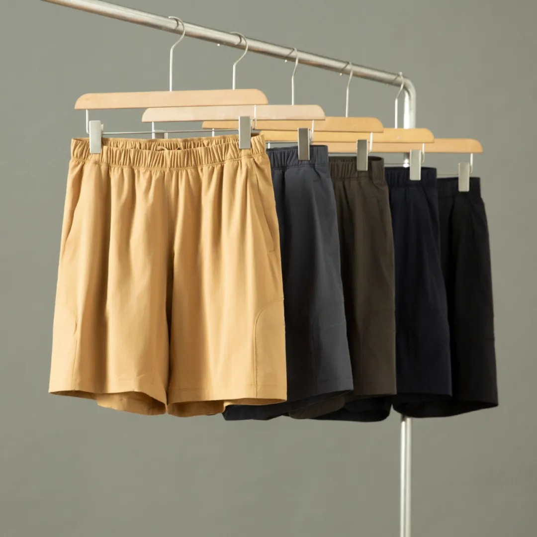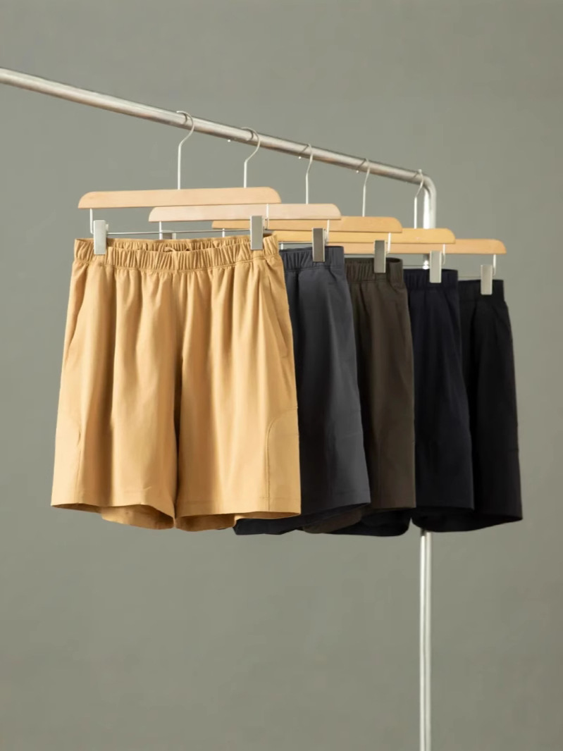 男士压胶速干跑步运动徒步短裤五分裤松紧腰系带 宽松五分裤 户外运动轻薄耐磨