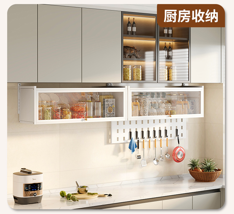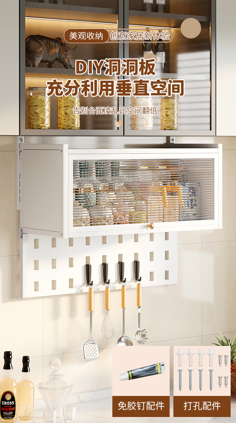 주방 다기능 벽걸이 캐비닛 양념 스토리지 랙 플립 업 스토리지 캐비닛 가정용 방진 스토리지 랙 도어스토어 가기