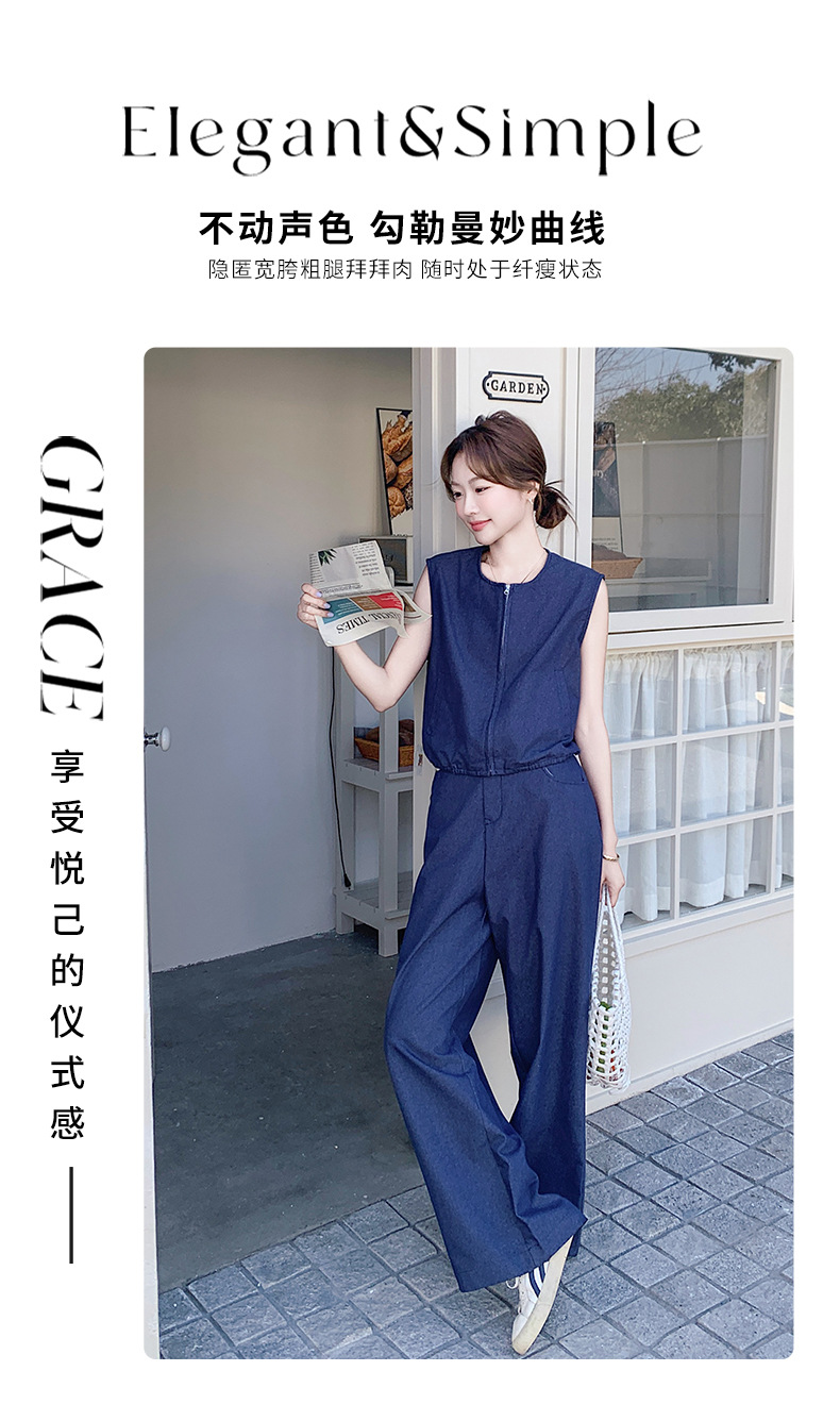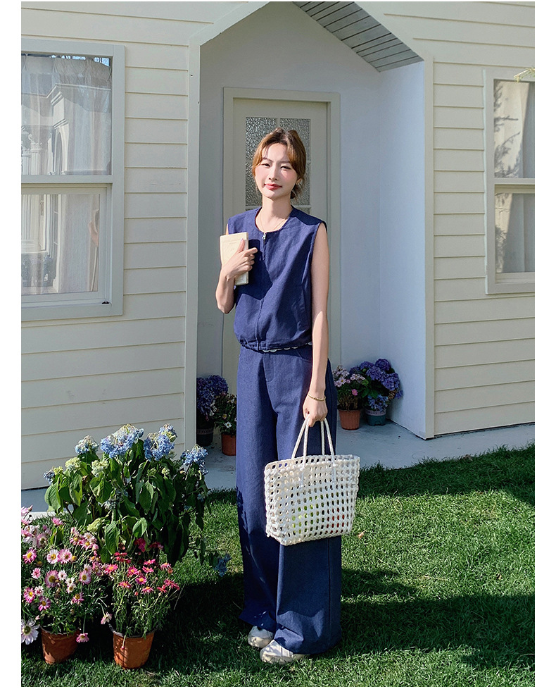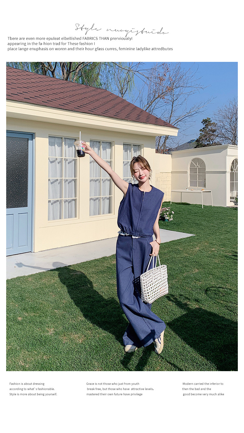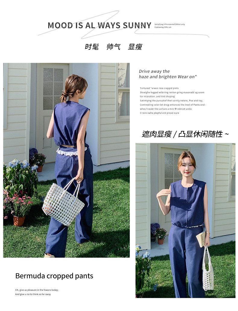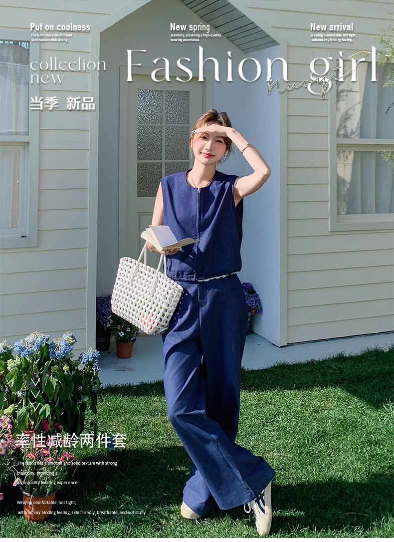 Ya Ya 데님 세트 여성 여름 새로운 우아한 빛 성숙한 캐주얼 슬리밍 민소매 조끼 투피스 세트스토어 가기