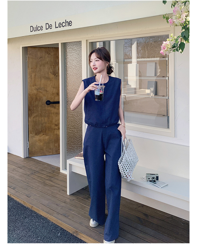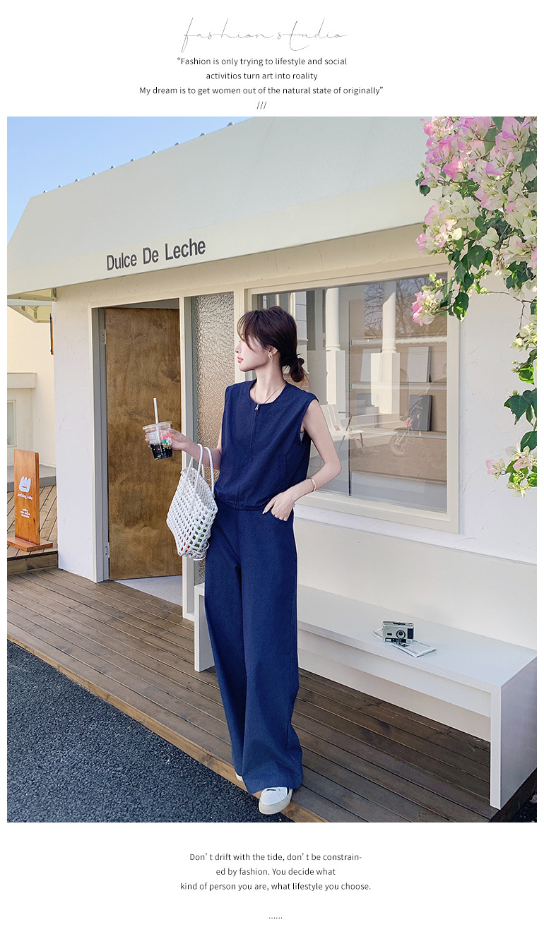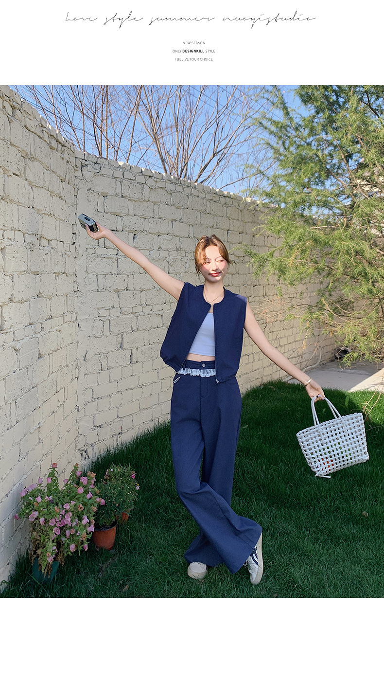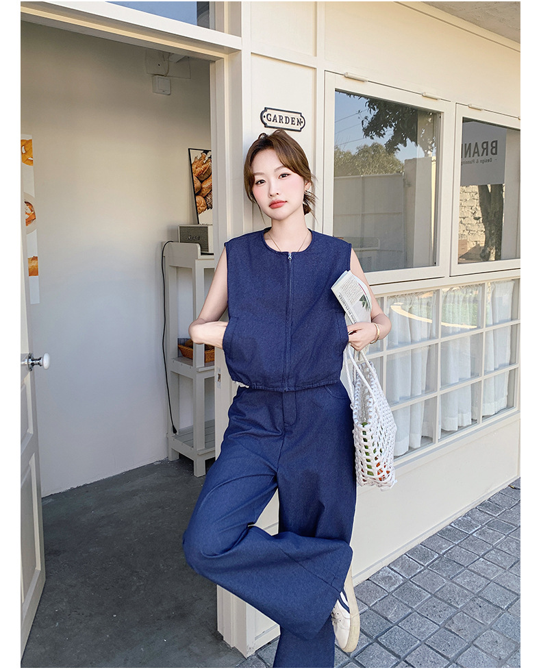 Ya Ya 데님 세트 여성 여름 새로운 우아한 빛 성숙한 캐주얼 슬리밍 민소매 조끼 투피스 세트스토어 가기