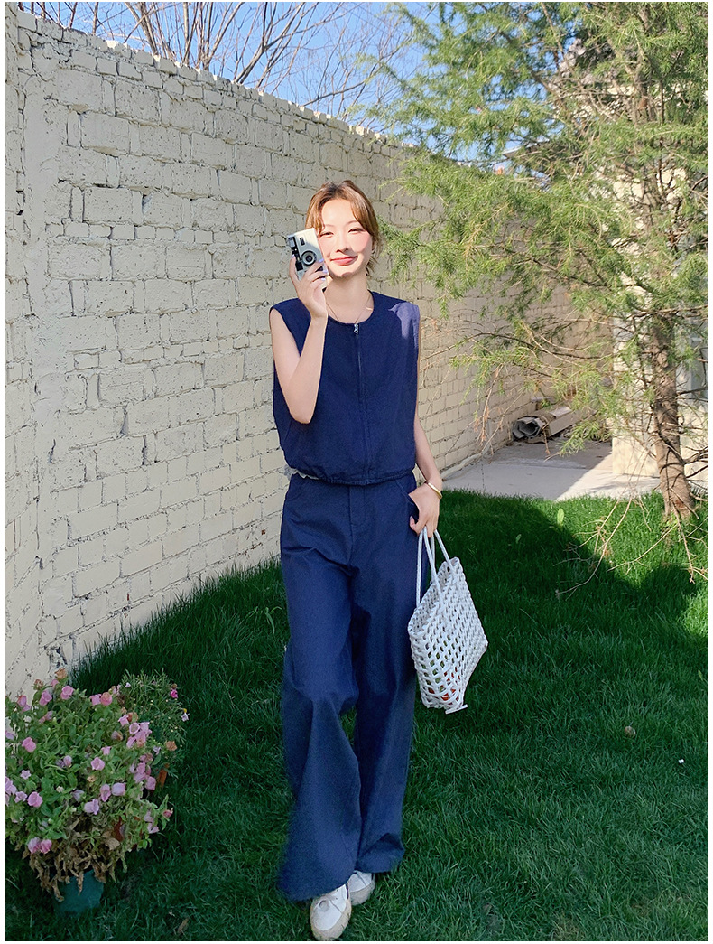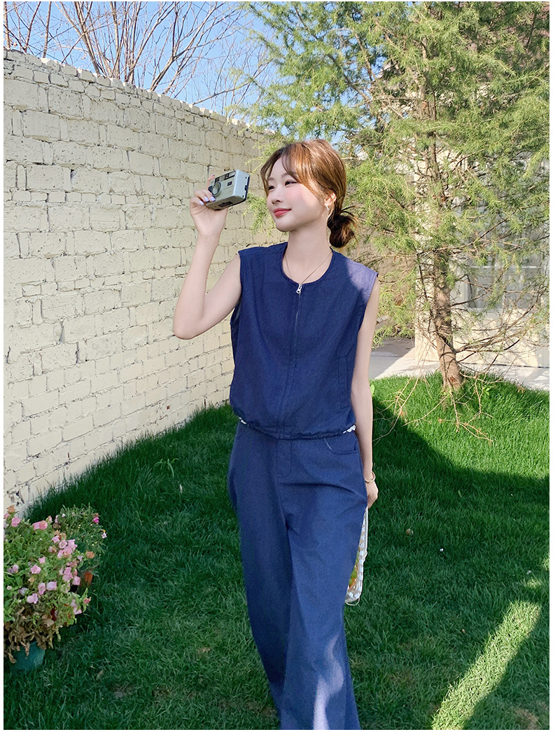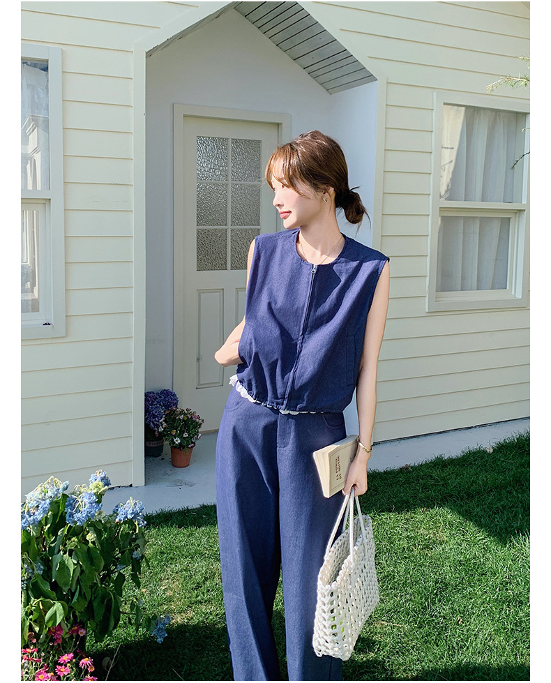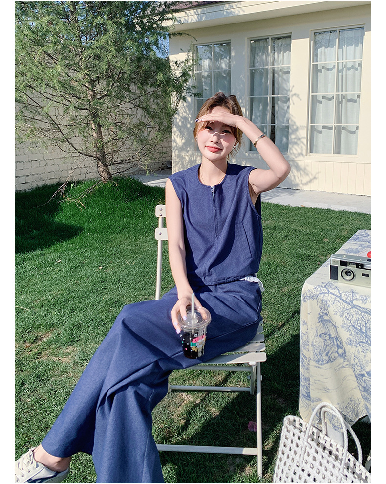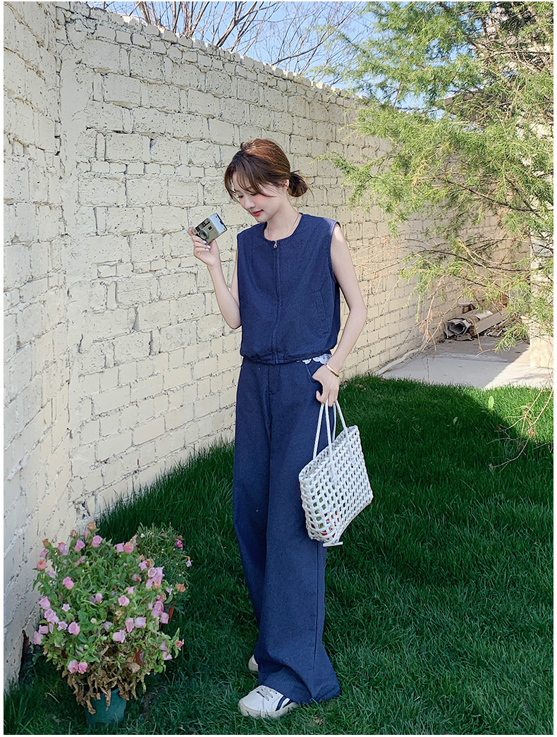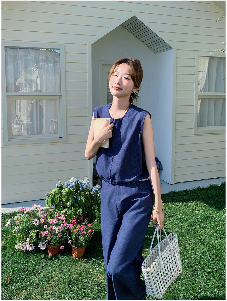 Ya Ya 데님 세트 여성 여름 새로운 우아한 빛 성숙한 캐주얼 슬리밍 민소매 조끼 투피스 세트