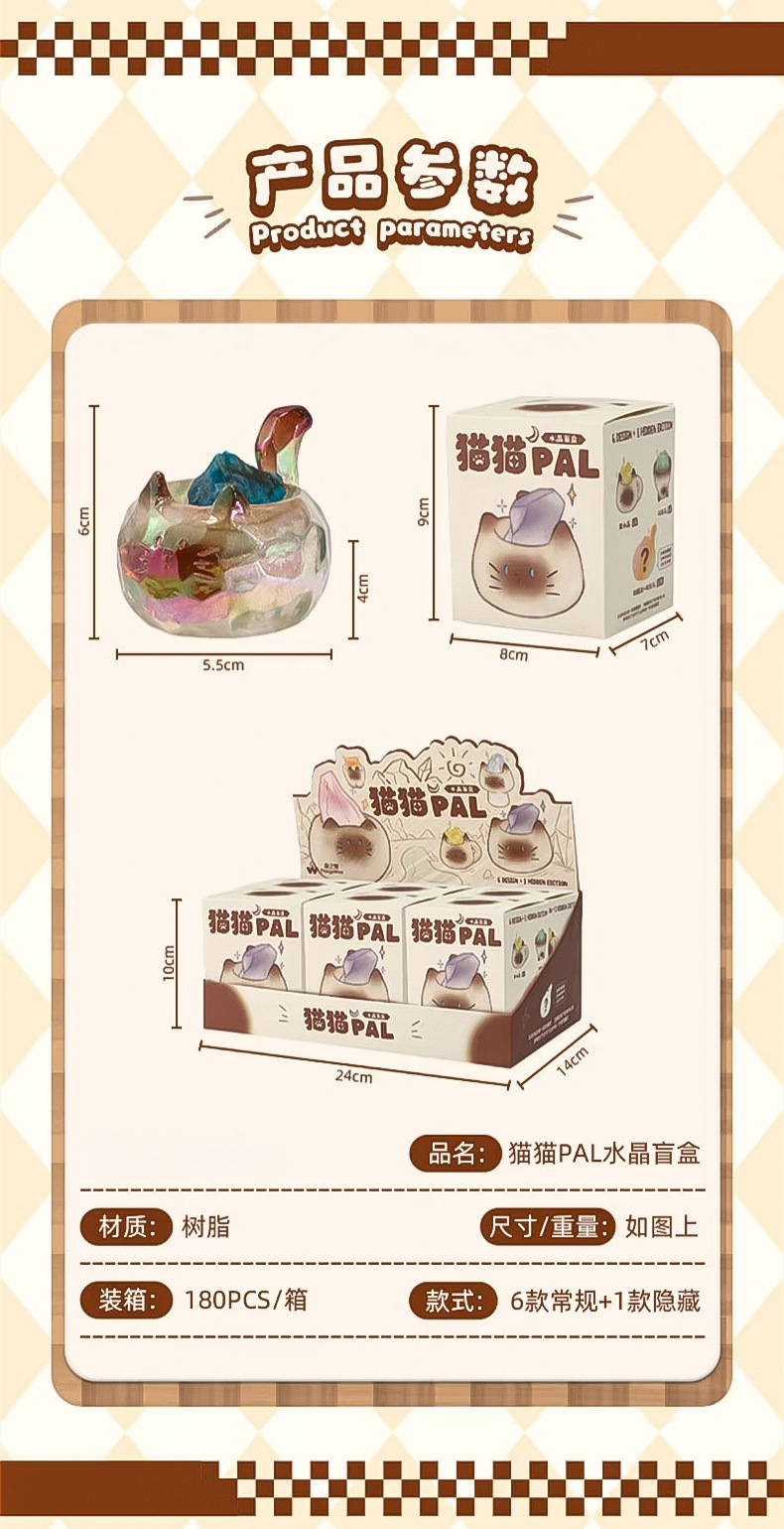【商品名称】W1244-2猫猫PAI水晶盲盒【商品材质】树脂
